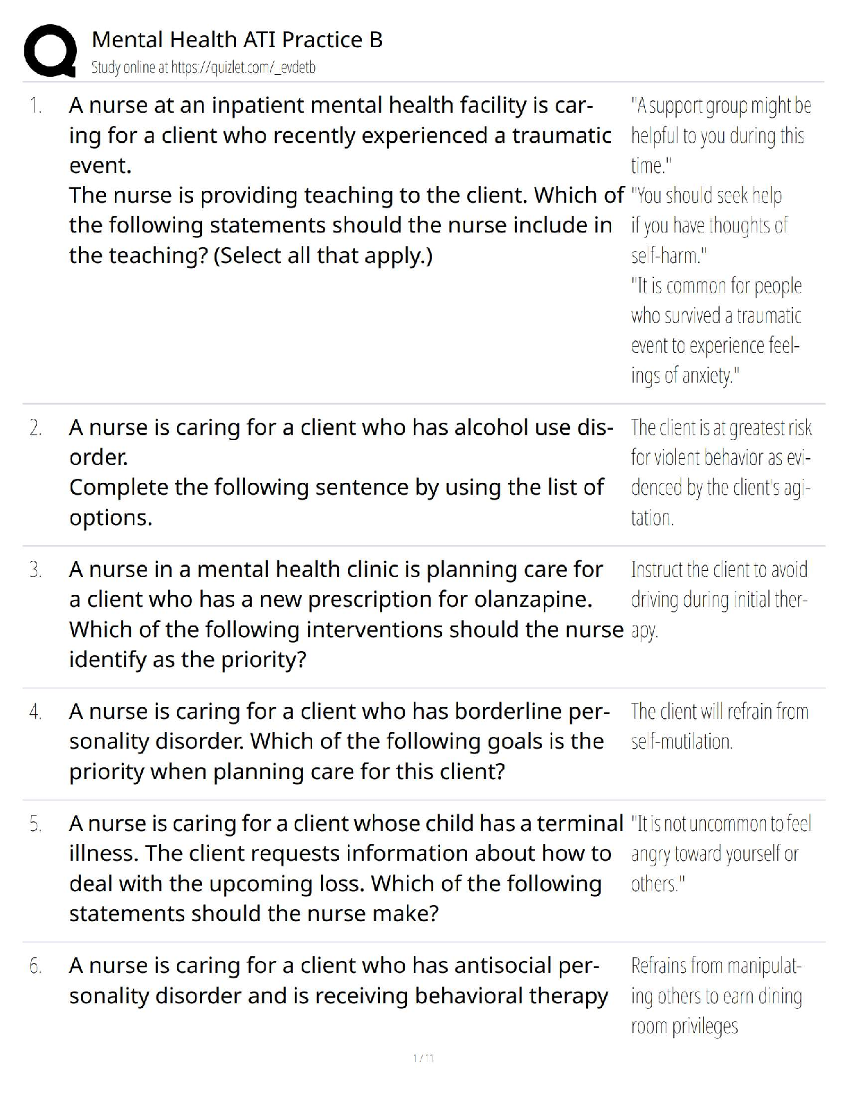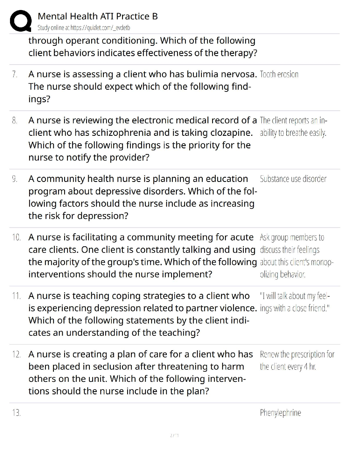 Mental Health ATI Practice B Exam Questions & Answers 2025/2026: The Ultimate Study Guide to Pass on Your First Attempt