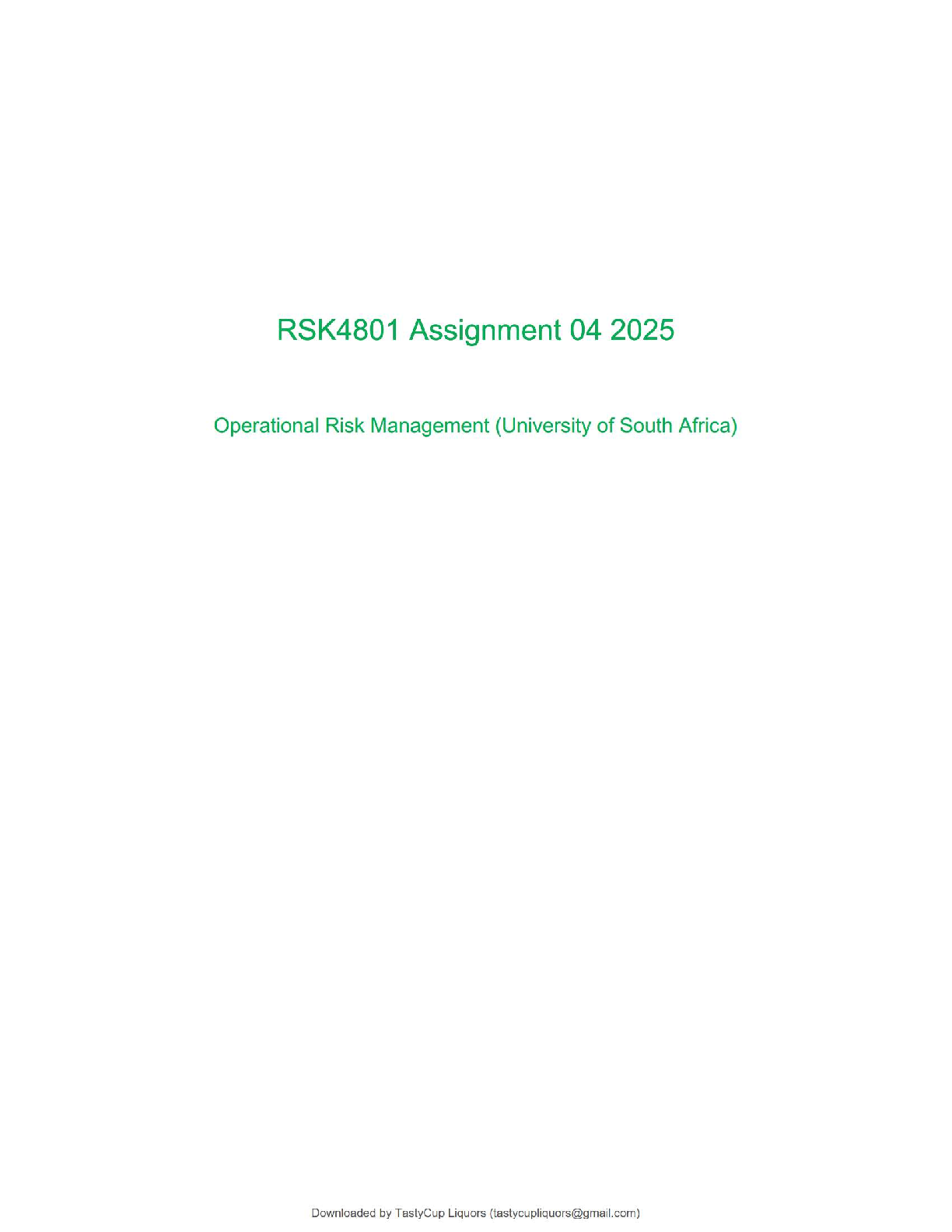 RSK4801 Operational Risk Management Assignment 04 Solution Guide | Latest 2025/2026 Edition for First-Attempt Exam Success
