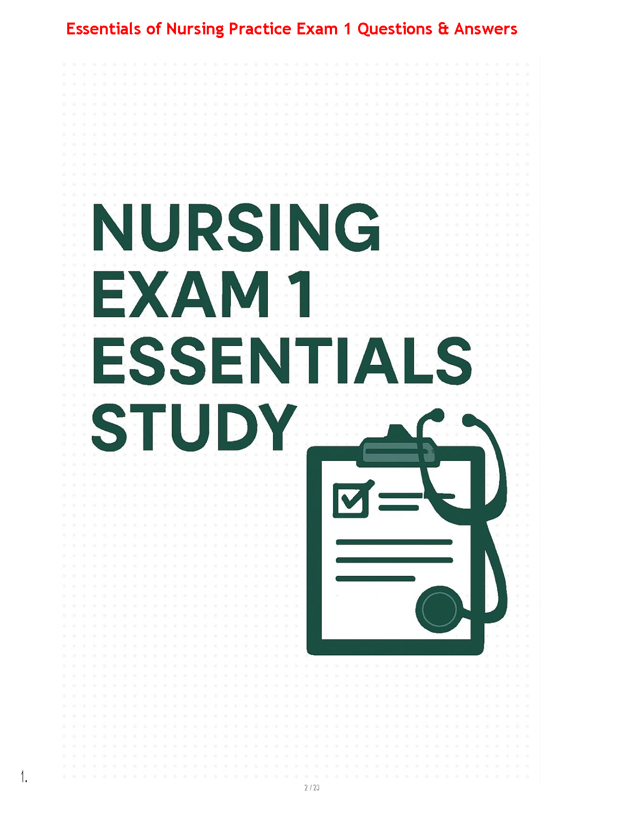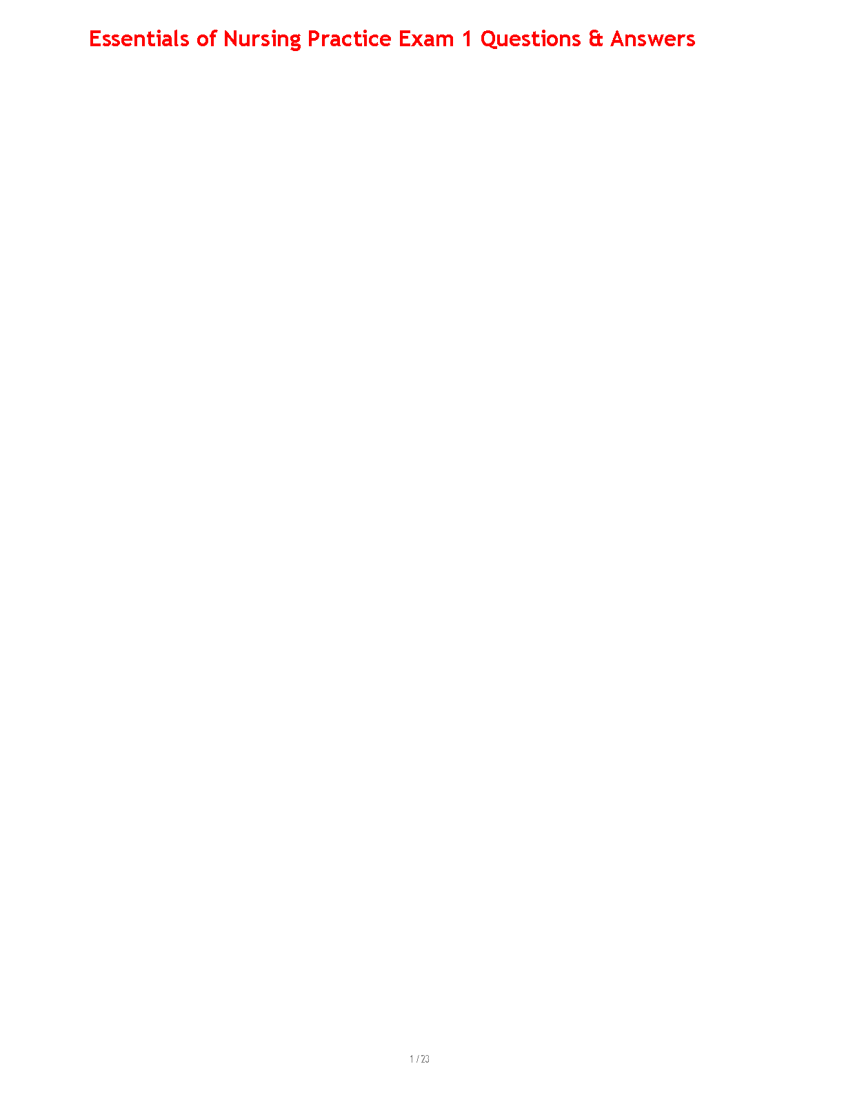 Essentials of Nursing Practice, 10th Edition by Potter, Perry, Stockert, and Hall - Test Bank (Exam 1 Questions & Answers)