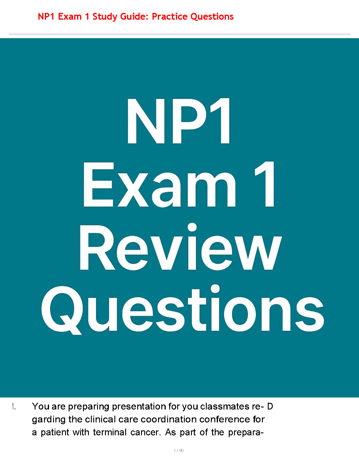 Ace your NP1 Exam 1 with our expertly compiled test bank. This comprehensive resource features a wide array of practice questions meticulously designed to mirror the actual exam format and difficulty. Covering all essential topics from the NP1 curriculum, this study guide provides detailed answers and rationales to help you grasp complex concepts and solidify your knowledge. Perfect for Nurse Practitioner students aiming for a top grade on their first attempt. Download now and start studying smarter, not harder!