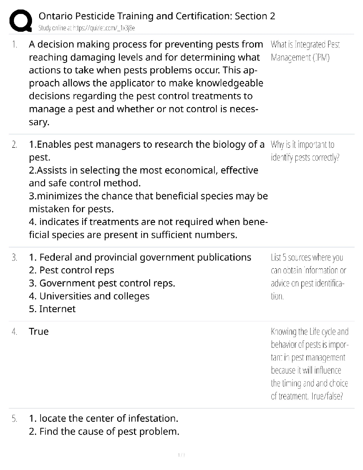 Unlock success in your Ontario Pesticide Training and Certification exam with this comprehensive test bank. Derived from the official Grower Pesticide Safety Course Manual by the Ontario Ministry of Agriculture, Food and Rural Affairs (OMAFRA), this study guide features a complete collection of questions and verified answers covering all critical course sections. Master key concepts like Integrated Pest Management (IPM), pest identification, and safety regulations to ensure you pass your certification on the first try.