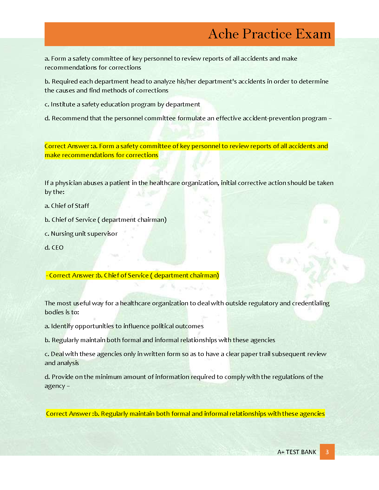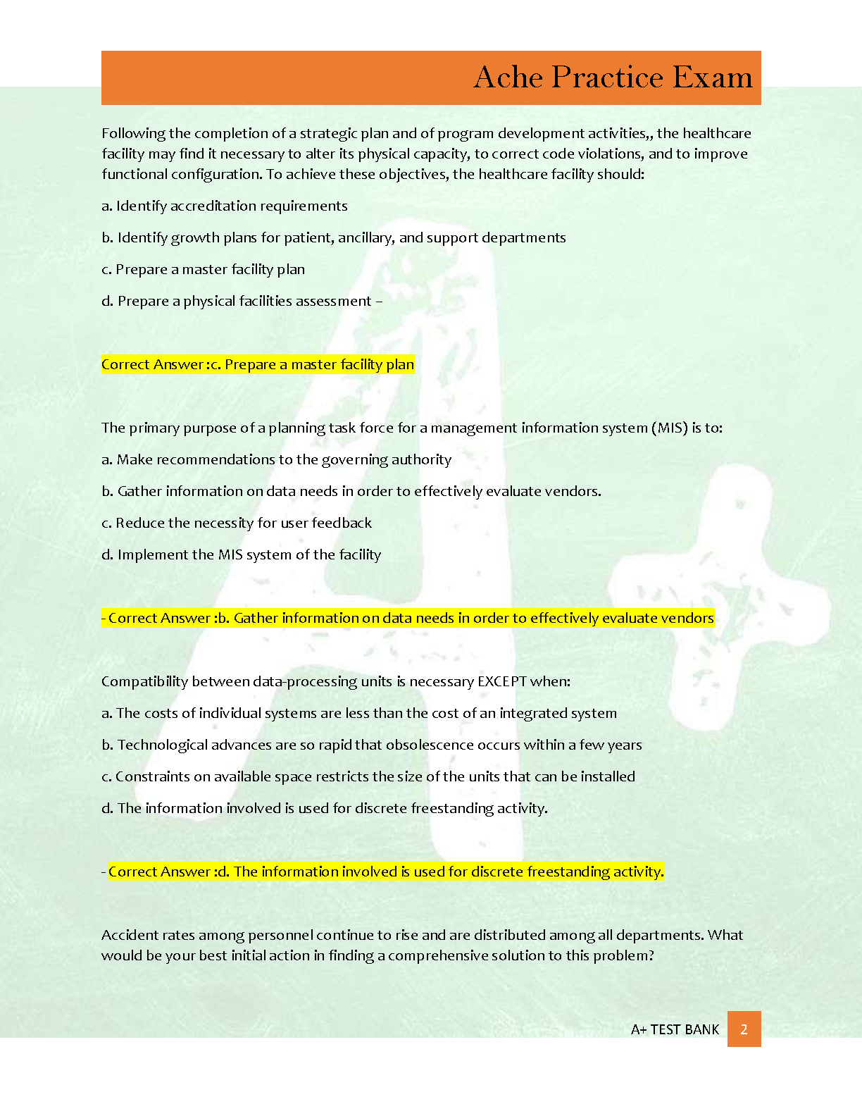 ACHE Practice Exam 1 Test Bank (2025/2026 Edition) - Over 200 Questions with Detailed, Verified Rationales