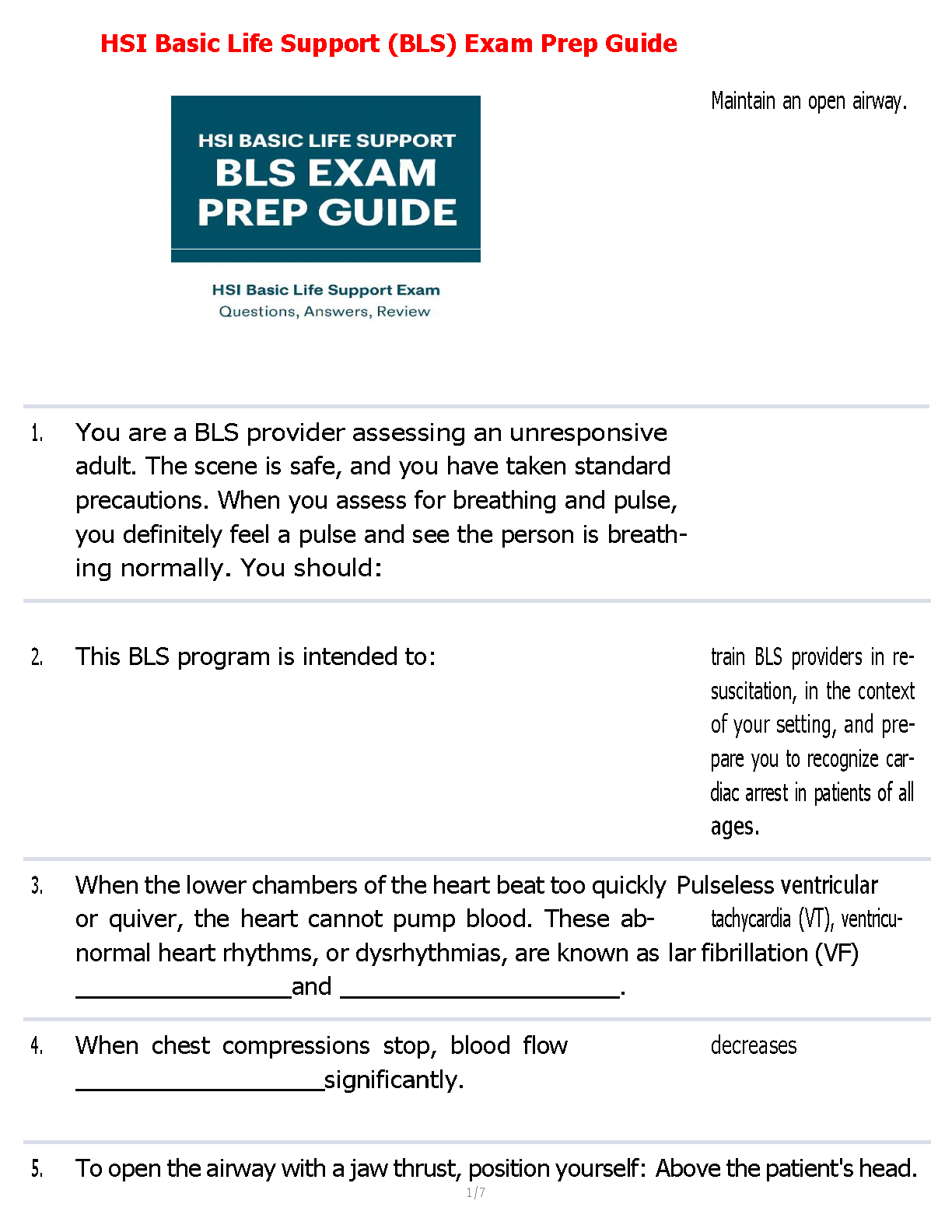 Ace your Health & Safety Institute (HSI) Basic Life Support (BLS) certification exam with ease! This comprehensive test bank is your ultimate prep guide for the 2024/2025 academic year. It features a complete collection of HSI BLS exam questions, each with a detailed, verified answer and review notes. This study tool is expertly designed to cover all key concepts, from patient assessment and CPR techniques to airway management and recognizing cardiac arrest. Master the material, build your confidence, and pass your BLS exam on the very first try. Perfect for healthcare students, professionals, and anyone seeking BLS certification. Download now to start preparing and avoid any resits!