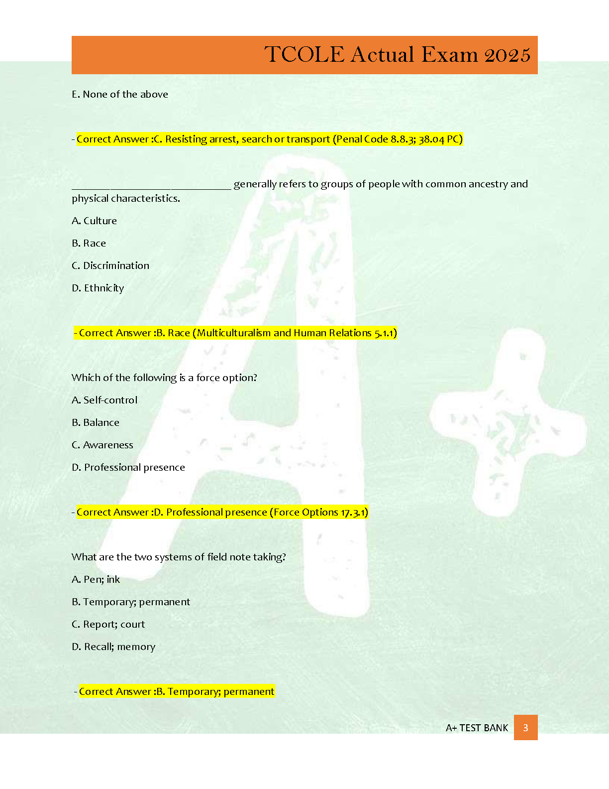 Ace your Texas Commission on Law Enforcement (TCOLE) certification with our newest 2025/2026 test bank. This ultimate study guide contains over 400 practice questions, each with a detailed, verified rationale to ensure you understand the concepts, not just memorize answers. Designed to mirror the actual exam, this resource is your key to passing on the first attempt and launching your law enforcement career in Texas. Download now for immediate access to the most up-to-date TCOLE exam preparation materials.