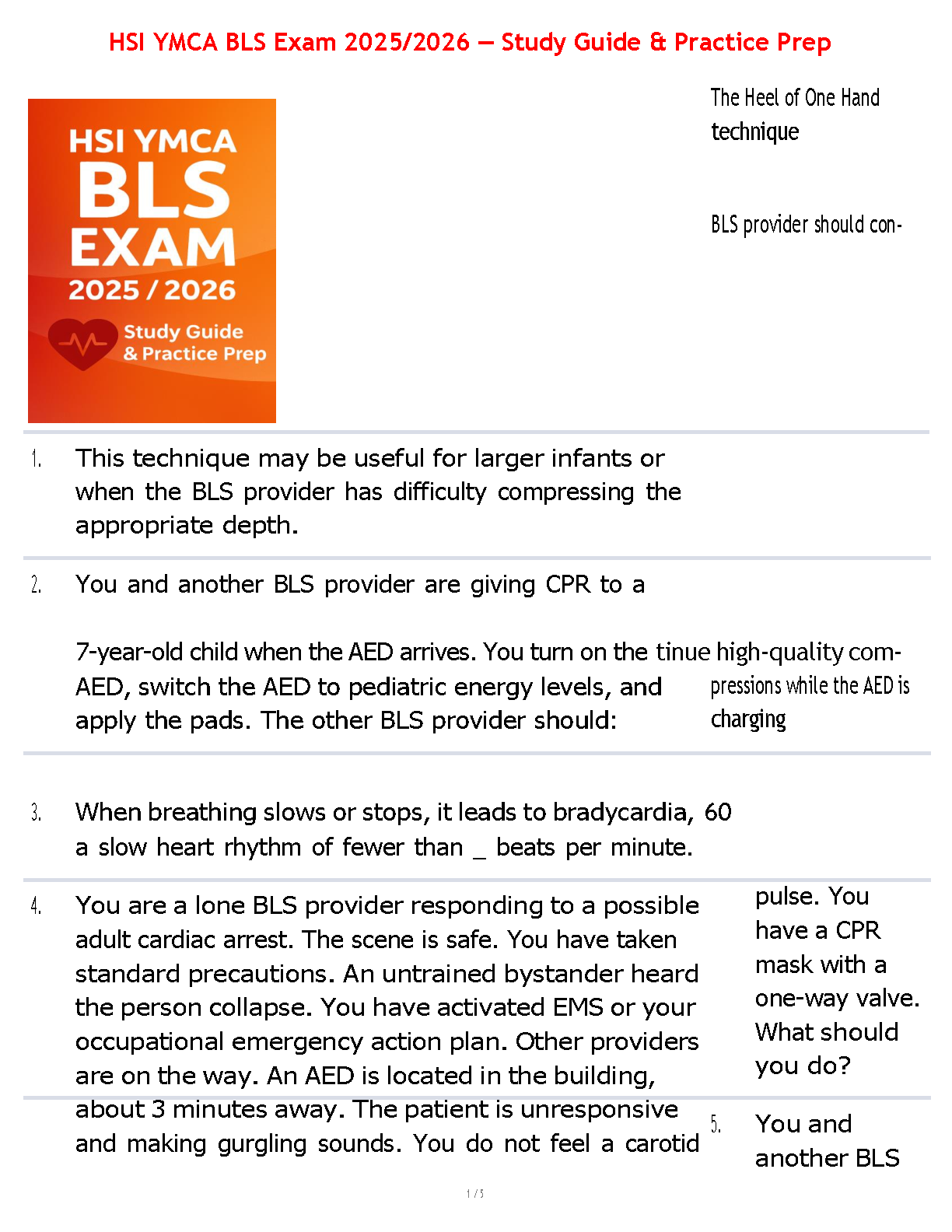 HSI YMCA BLS Exam 2025/2026 Test Bank: Comprehensive Study Guide & Practice Questions by the Health & Safety Institute