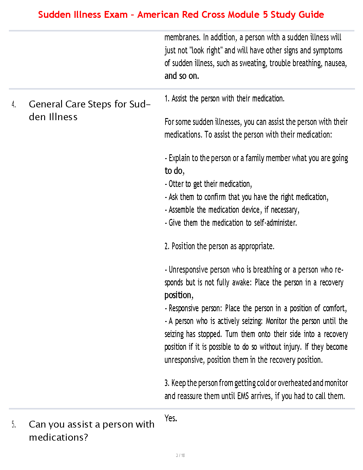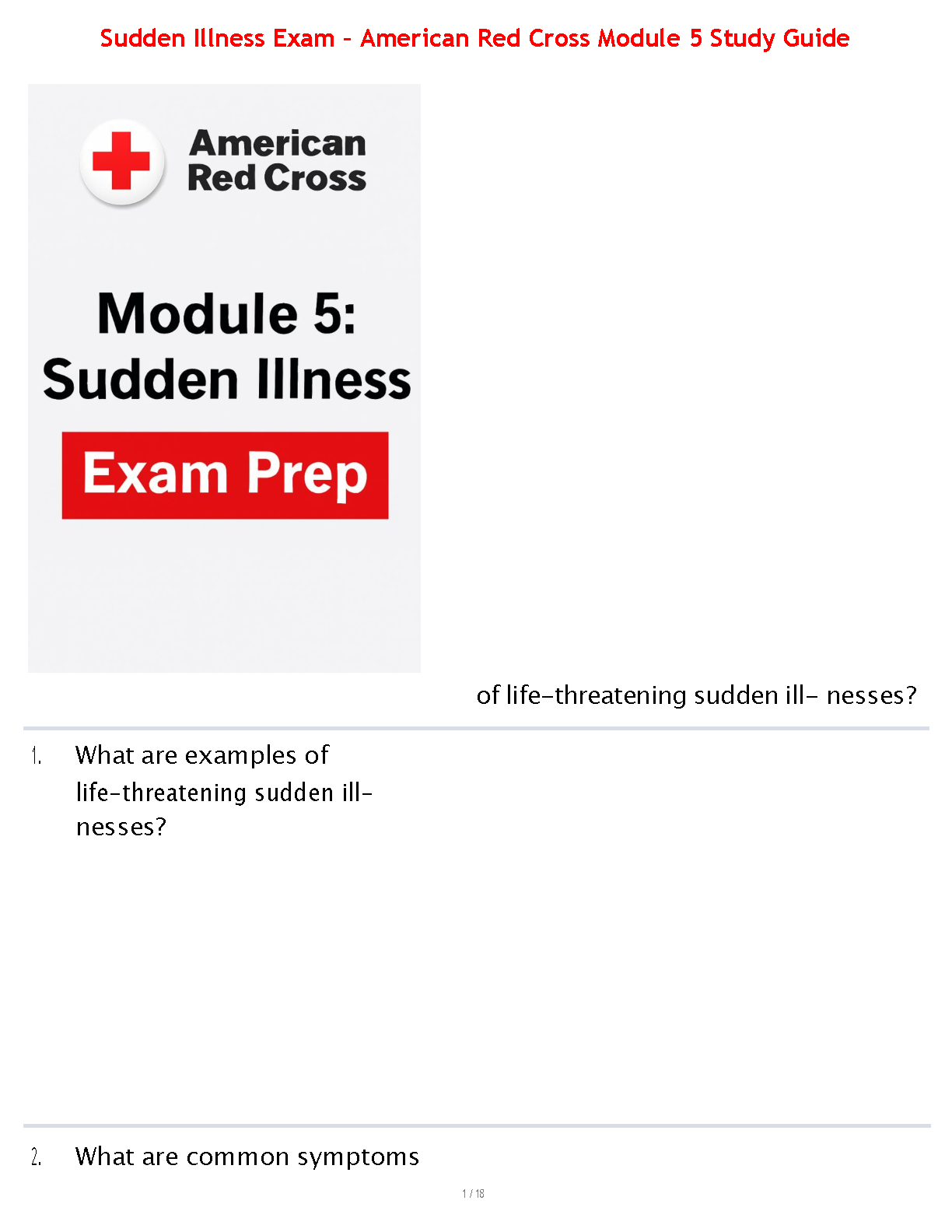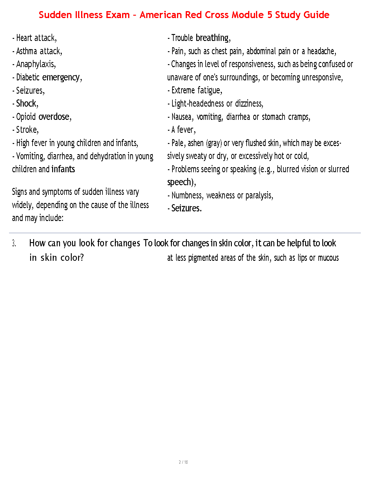 American Red Cross Module 5 Sudden Illness Exam Prep - Latest Test Bank with All Questions & Verified Answers