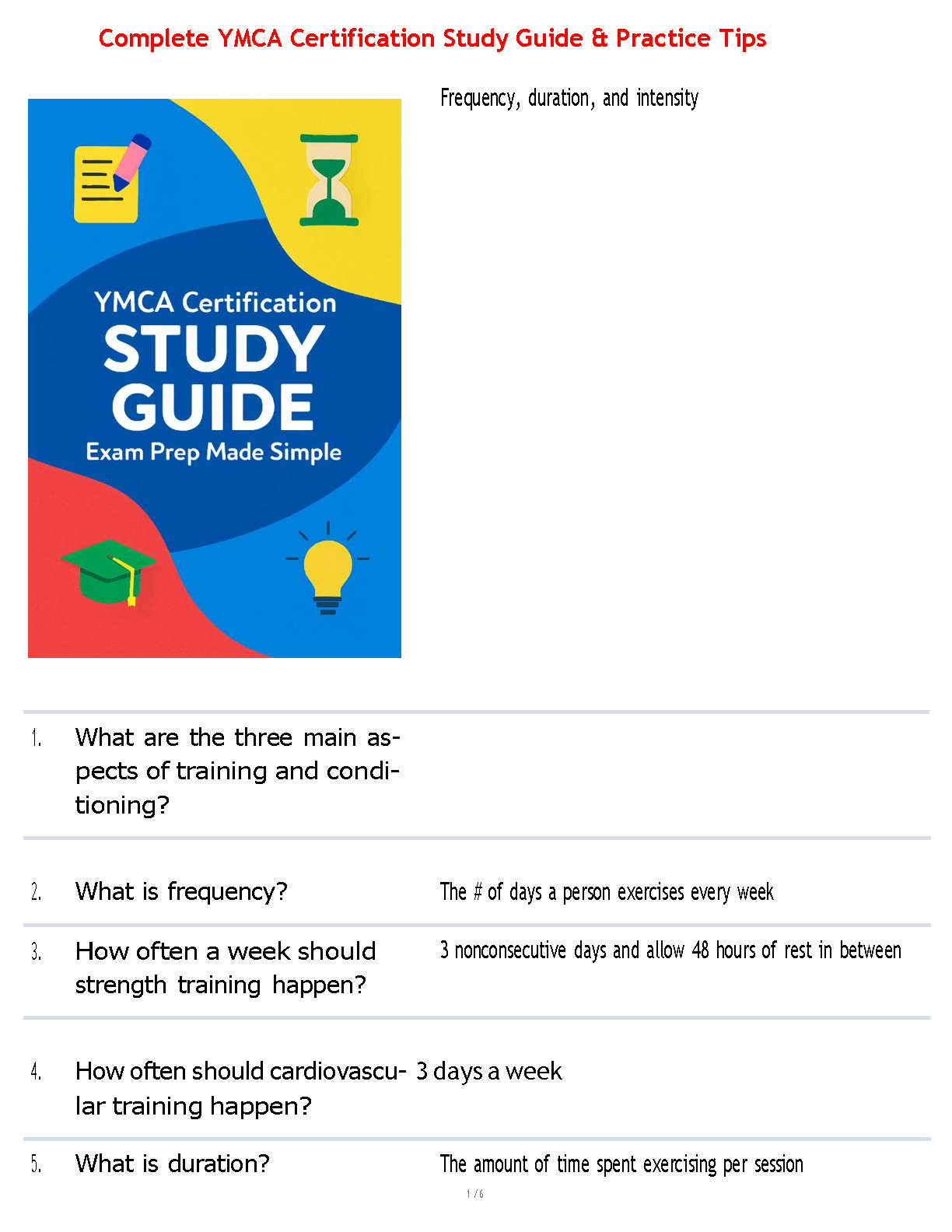 Unlock your career in fitness with our comprehensive test bank for the YMCA Certified Personal Trainer (CPT) exam. This all-in-one study guide features a complete collection of practice questions and detailed answers covering crucial topics like training principles, frequency, duration, intensity, and program design. Prepare effectively, build your confidence, and pass your YMCA certification on the first try!