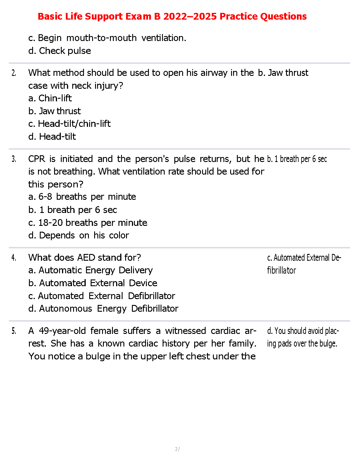 AHA BLS Exam B (2022-2025 Edition) Test Bank: Verified Practice Questions and Answers for First-Attempt Certification Success 2025/2026