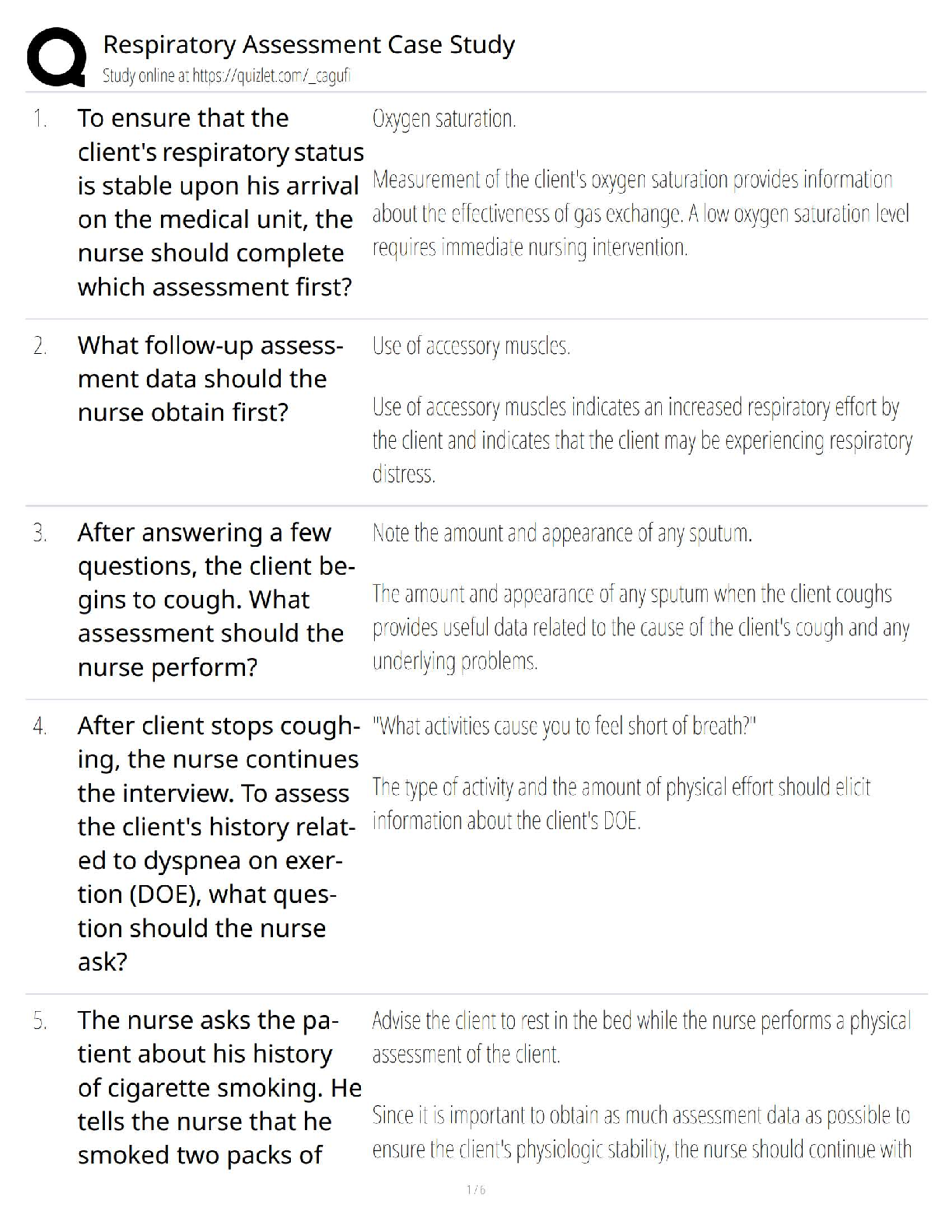 Latest 2025/2026 Respiratory Assessment Nursing Case Study with Answers and Rationales | First-Attempt Exam Success