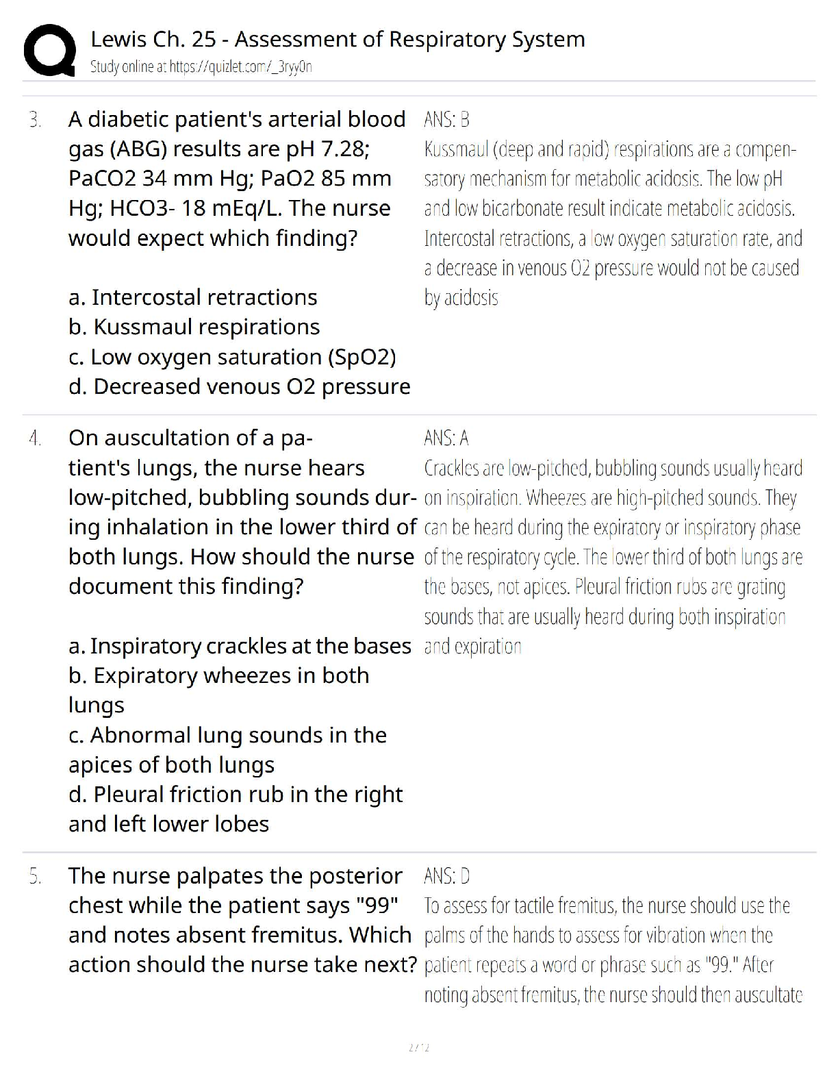 Test Bank for Lewis's Medical-Surgical Nursing, 12th Edition by Harding, Kwong, & Roberts - Chapter 25: Assessment of Respiratory System