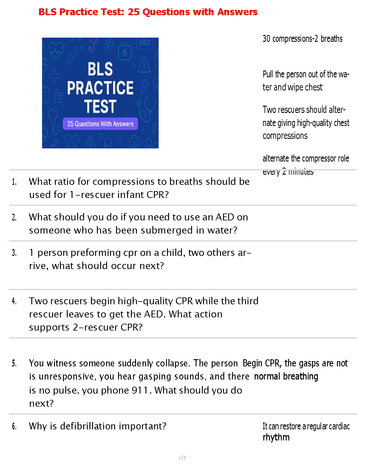 Get ready to ace your Basic Life Support (BLS) certification exam with our expertly crafted 2025/2026 test bank. This comprehensive resource is built upon the most recent American Heart Association (AHA) guidelines for CPR and ECC. Inside, you'll find a wide range of practice questions with verified answers, covering critical scenarios like single-rescuer CPR for infants, AED use on submerged victims, and team dynamics in resuscitation. Stop worrying about resits and master the essential knowledge needed to save lives. Our BLS practice test is the ultimate study tool to build your confidence and ensure you pass your certification on the very first try.