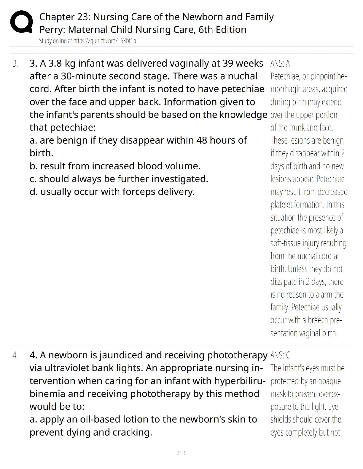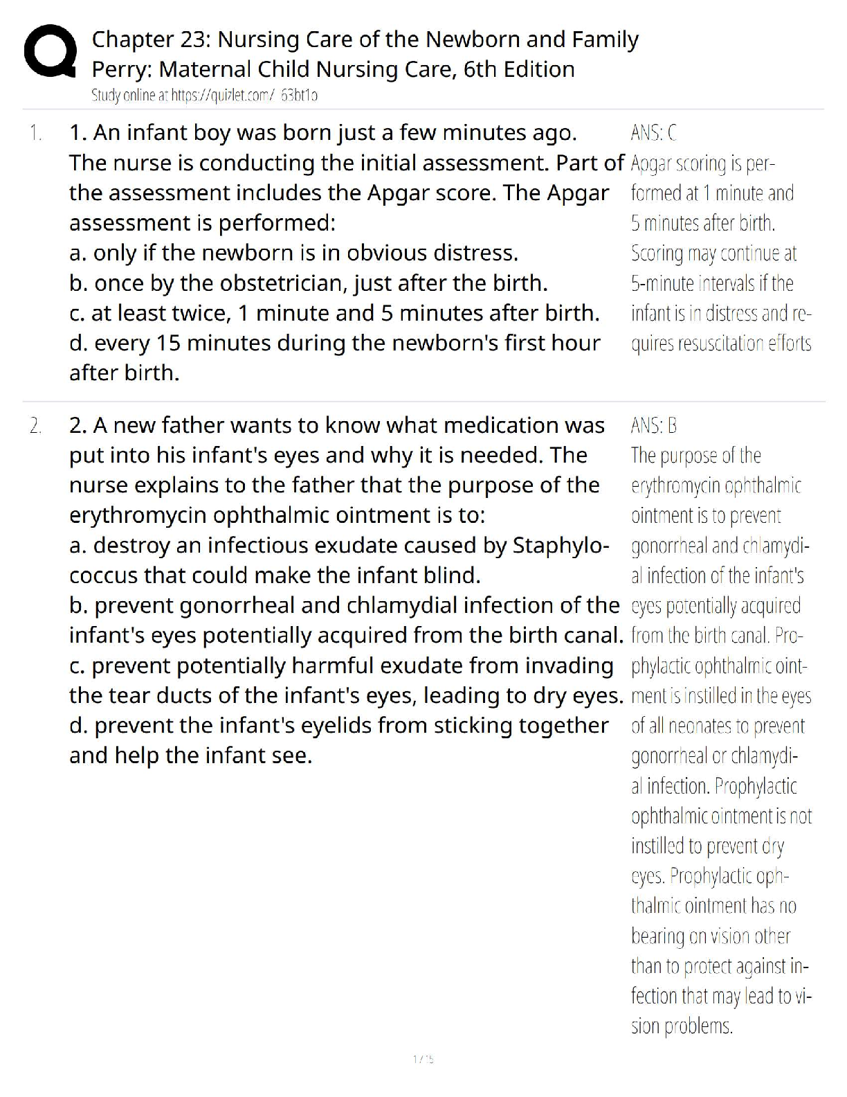 Unlock exam success with the complete Test Bank for 'Maternal Child Nursing Care, 6th Edition' by Perry, Hockenberry, Lowdermilk, and Wilson. This essential study tool provides a comprehensive collection of questions and detailed answers with rationales, focusing on key topics like Apgar scoring, initial newborn assessments, and prophylactic treatments. Designed to mirror real exam questions, this resource is perfect for nursing students aiming to master the material, test their knowledge, and pass their exams with confidence. Prepare effectively and solidify your understanding of essential maternal-child nursing care.
