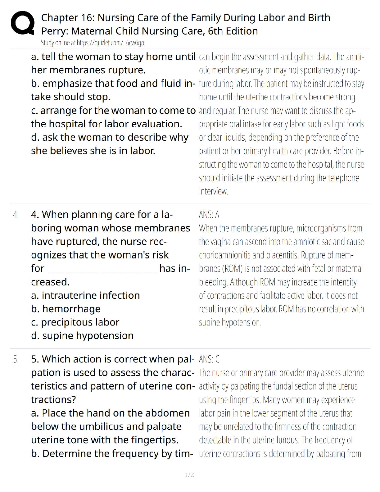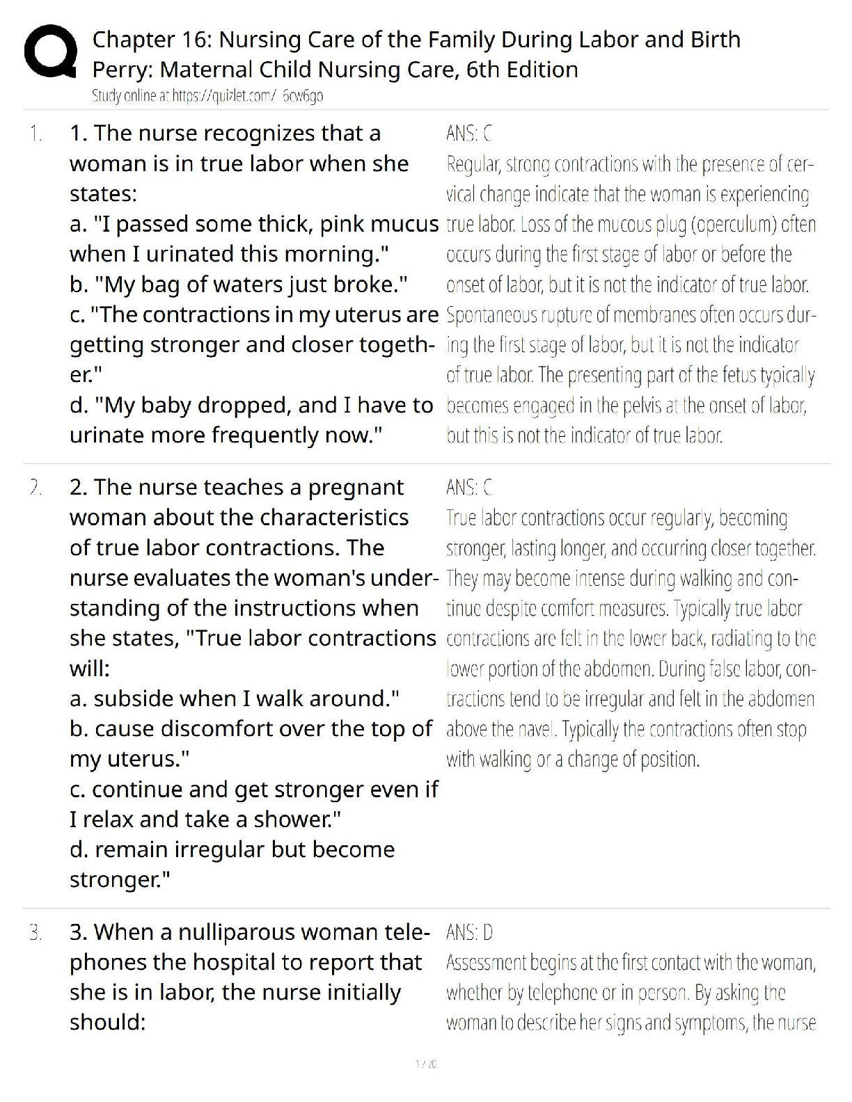Unlock your full potential with this verified Test Bank for Chapter 16: Nursing Care of the Family During Labor and Birth, from the renowned textbook 'Maternal Child Nursing Care, 6th Edition'. This essential study tool provides a complete collection of exam-style questions with detailed answers and rationales. It's perfectly designed for nursing students to master critical concepts, prepare confidently for exams, and excel in their maternal-child nursing course.