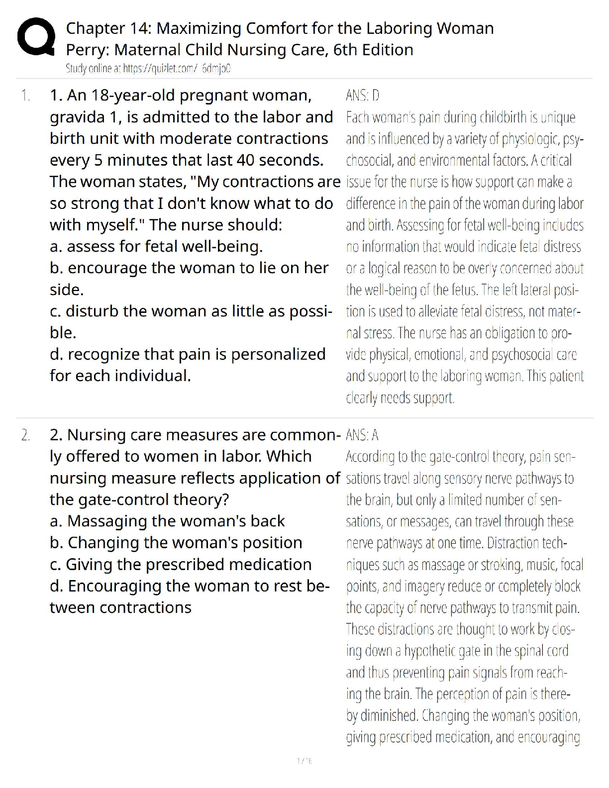 Master the core concepts of maternal and child nursing with this comprehensive test bank for the 6th Edition of Perry's renowned textbook. This essential study tool features a vast collection of exam-style questions, complete with detailed answers and rationales, covering key topics like Chapter 14: Maximizing Comfort for the Laboring Woman. Designed to enhance your critical thinking and clinical judgment, this resource is perfect for nursing students looking to ace their exams and build a strong foundation for a successful career.