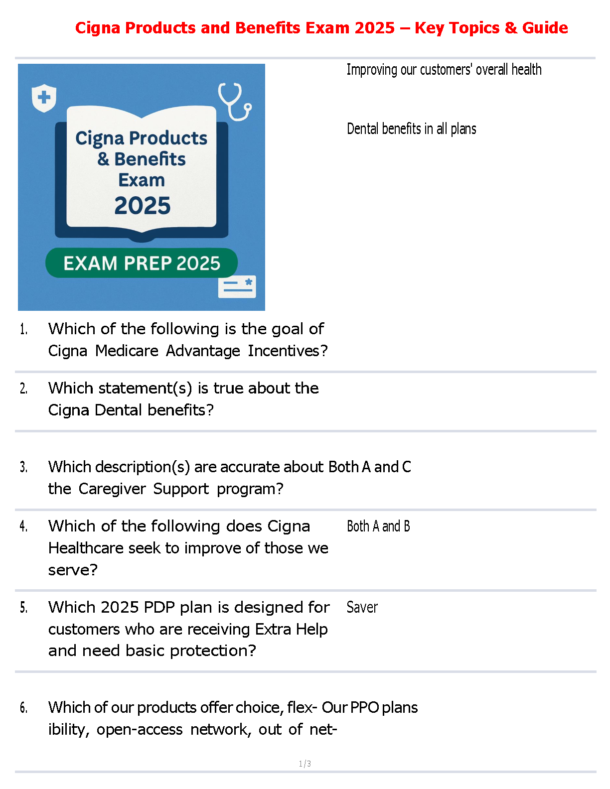Latest 2025 Cigna Products and Benefits Exam: Verified Test Bank with Questions & Answers
