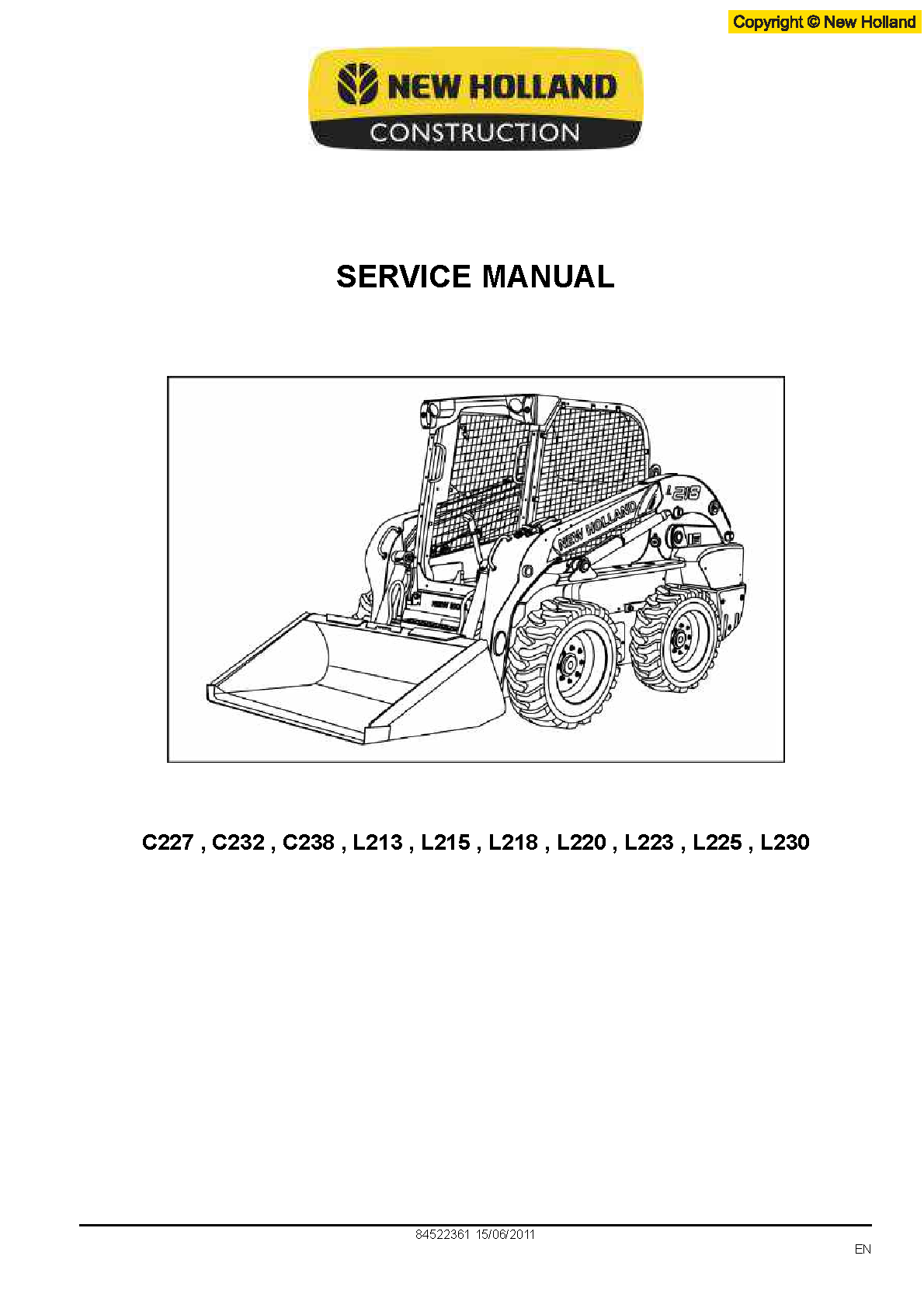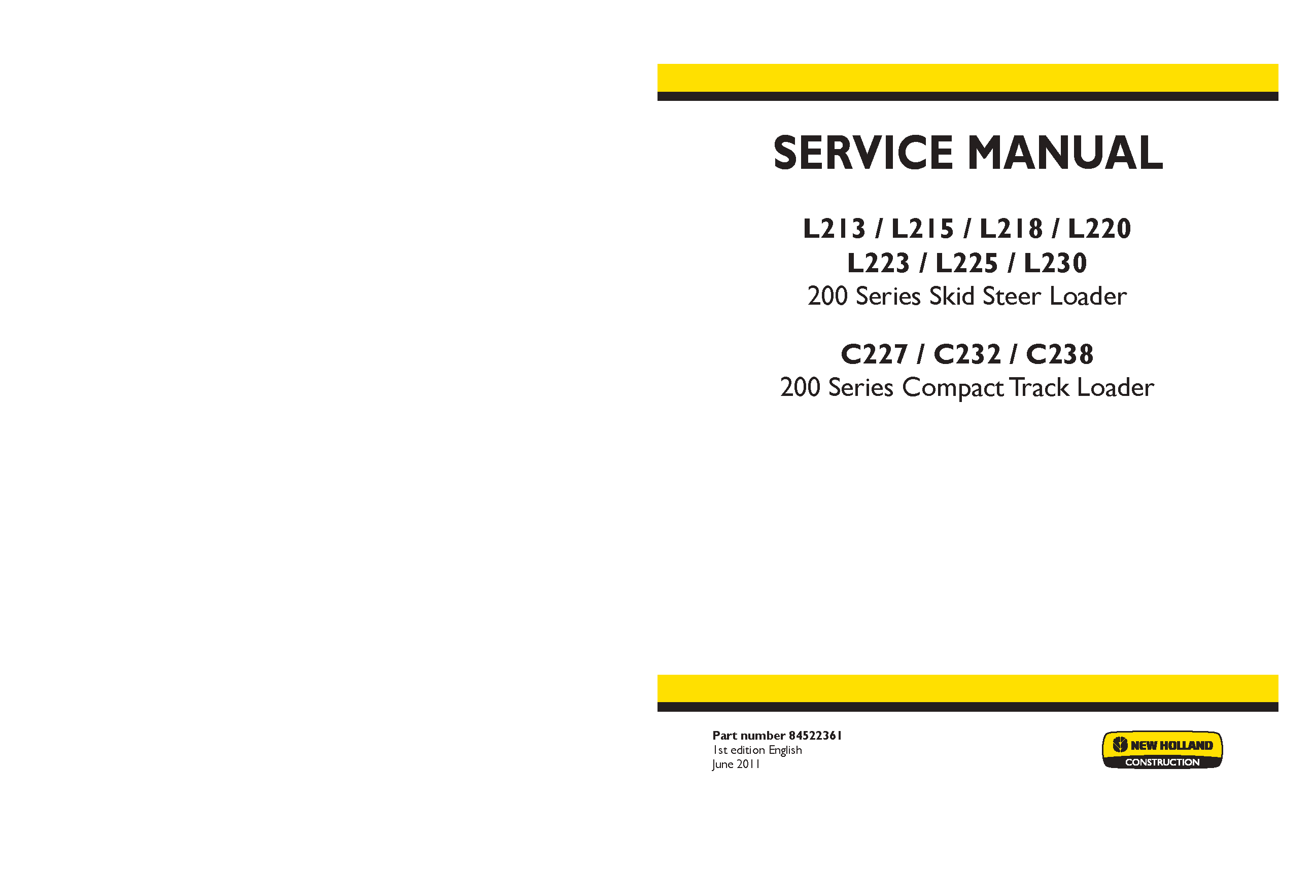 New Holland 200 Series Service Manual (1st Edition) by New Holland Construction: L213-L230 & C227-C238 Repair Guide