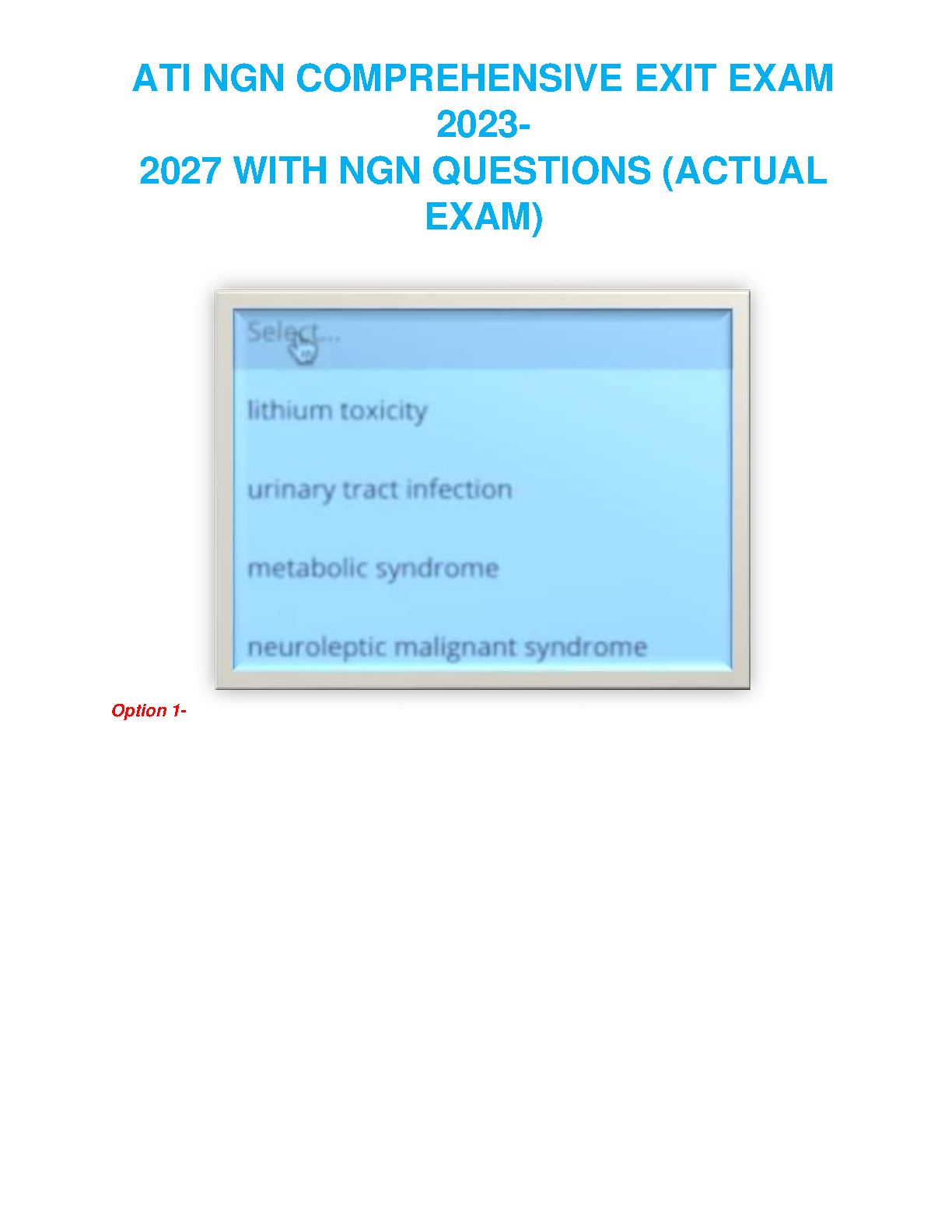 Master the ATI NGN Comprehensive Exit Exam with our latest 2023-2027 test bank. This essential study resource is packed with actual Next Generation NCLEX (NGN) style questions, complete with detailed, verified answers and rationales. Designed to mirror the real exam experience, this guide covers all critical nursing concepts you'll face. Build your confidence, sharpen your clinical judgment skills, and ensure you're fully prepared to ace your exit exam and pass the NCLEX on your very first attempt. Don't leave your success to chance—get the ultimate prep tool today!