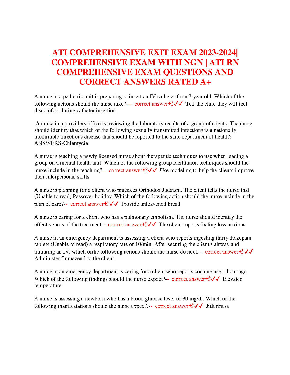 Unlock your potential and guarantee your success on the ATI RN Comprehensive Exit Exam with our 2024 NGN Test Bank. This complete collection features hundreds of exam-style questions, each with a verified, correct answer to ensure you are studying the right material. Designed to mirror the actual exam, this resource is perfect for nursing students aiming for an A+ grade. Master complex topics, reinforce your knowledge, and walk into your exam with the confidence to pass on your first try. Get the ultimate study companion for the ATI Comprehensive Exit Exam today.