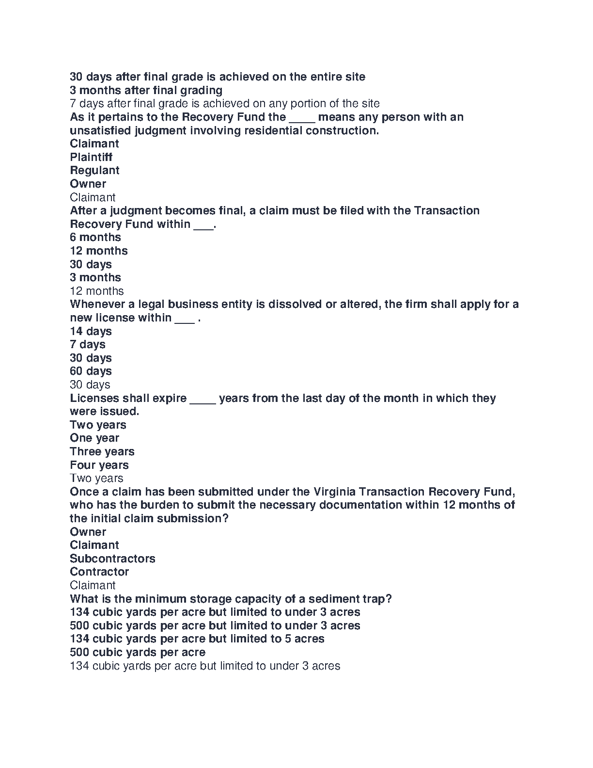 Virginia VA Contractor License Exam Test Bank (For Class A, B, & C) | Latest Questions and Correct Answers