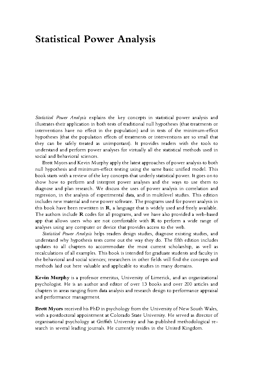 Test Bank for Statistical Power Analysis: A Simple and General Model for Traditional and Modern Hypothesis Tests, 5th Edition by Kevin R. Murphy and Brett Myors