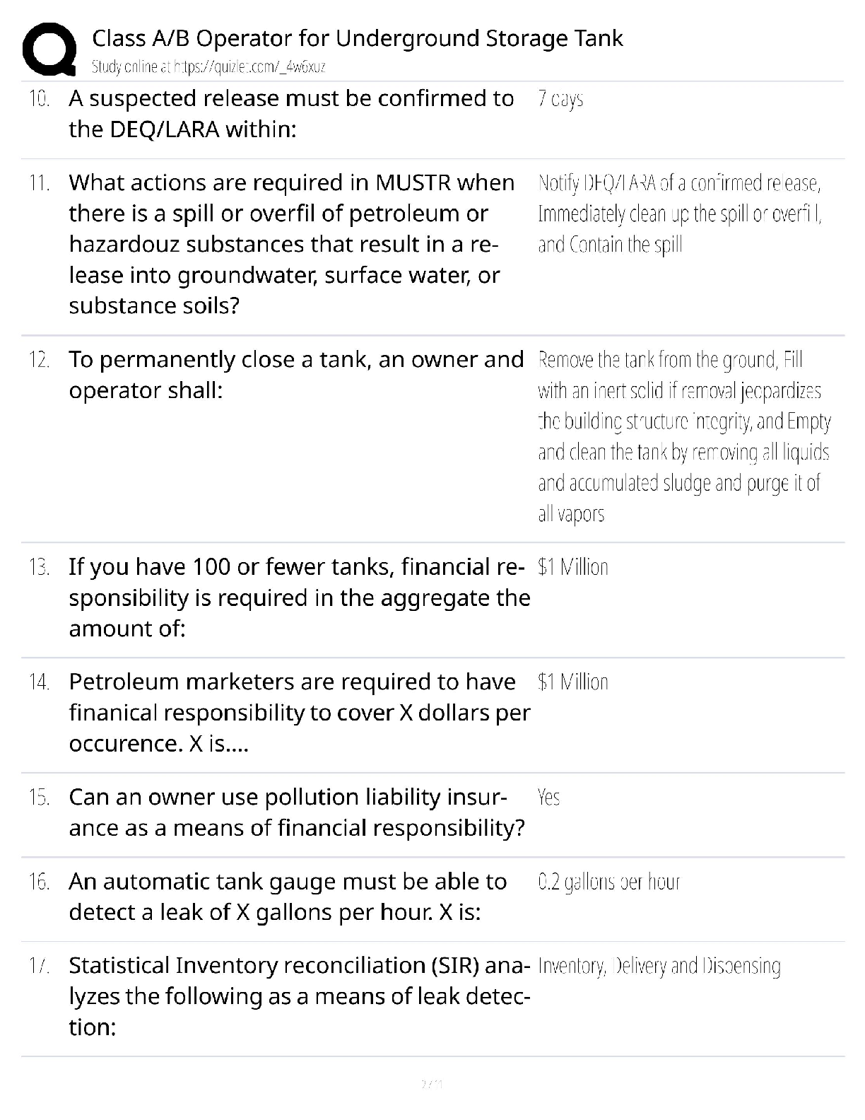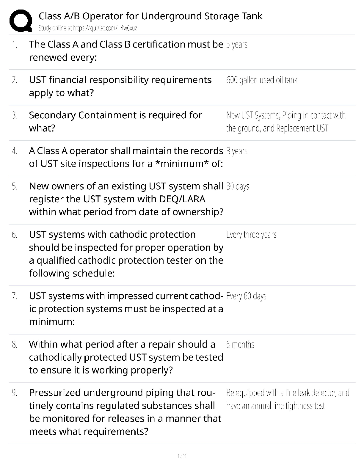 Ace your Class A/B Underground Storage Tank (UST) Operator certification exam with this comprehensive test bank, fully updated for the 2025/2026 testing season. This resource provides a detailed collection of practice questions and verified answers covering all essential topics, including certification renewals, financial responsibility, secondary containment, cathodic protection, and inspection schedules. This study guide is meticulously crafted to ensure you master the material and pass your exam on the first attempt, helping you avoid the stress and cost of resits.