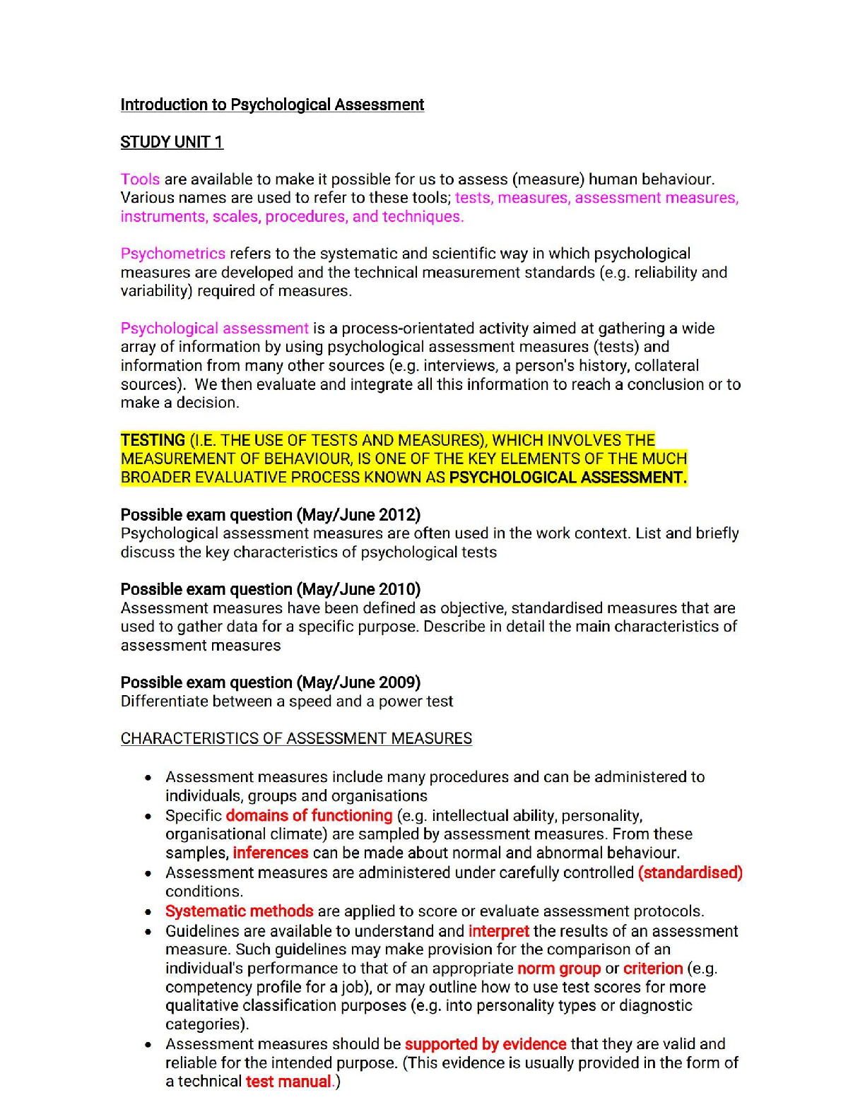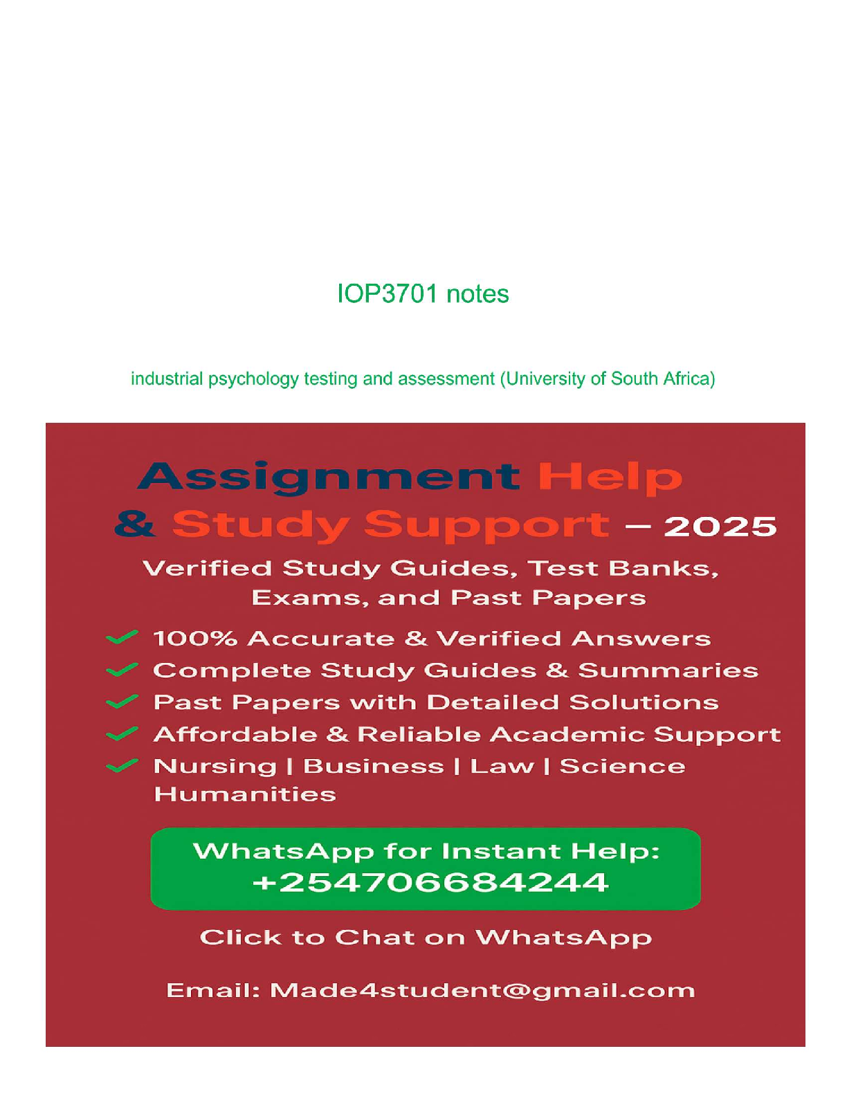 IOP3701 Industrial Psychology Testing and Assessment UNISA - Latest 2025/2026 Study Notes & Exam Pack for First-Time Pass