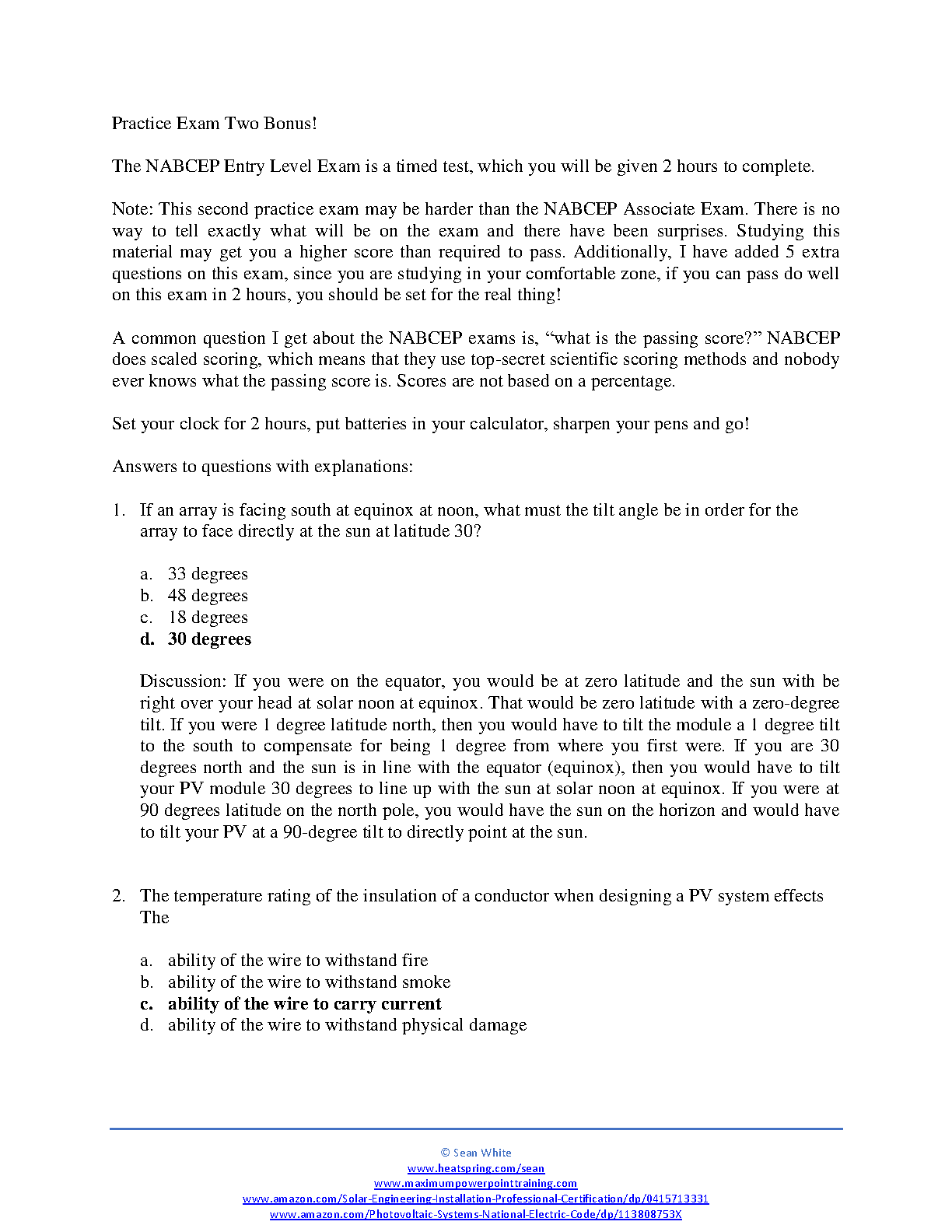 Get ready to ace your NABCEP Entry Level Exam with this comprehensive test bank for Sean White's 'Solar Photovoltaic Basics, 3rd Edition'. This resource provides a full collection of practice questions, complete with detailed answers and expert explanations. Each question is designed to mirror the actual exam format, covering critical topics in solar PV engineering and installation. Master the concepts, test your knowledge, and walk into your exam with the confidence to pass on your first try. This is the ultimate study tool for aspiring solar professionals.