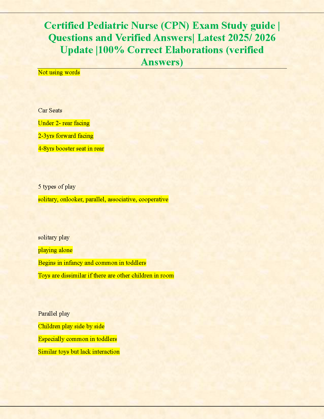 CPN Test Bank 2025/2026: Comprehensive Study Guide with Certified Pediatric Nurse Exam Questions and Verified Answers