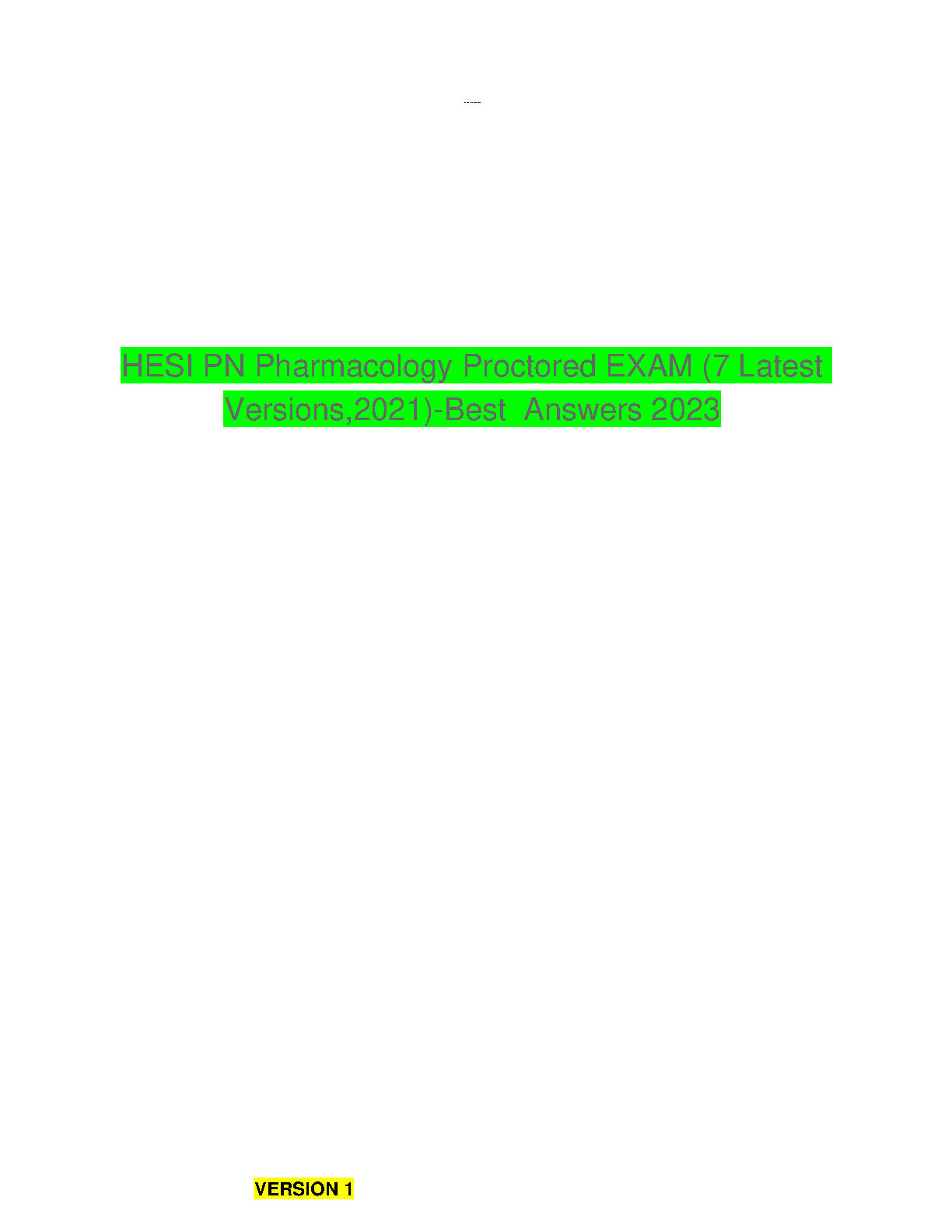 HESI PN Pharmacology Proctored Exam 2025/2026: Comprehensive Guide with 7 Versions & Verified Answers to Pass on Your First Attempt