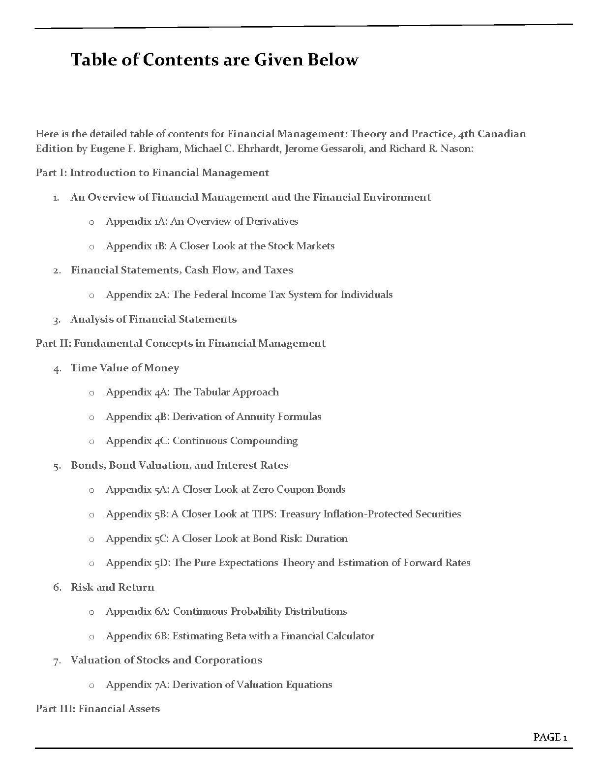 Test Bank and Solution Manual for Financial Management: Theory and Practice, 4th Canadian Edition by Eugene F. Brigham, Michael C. Ehrhardt, Jerome Gessaroli, Richard R. Nason