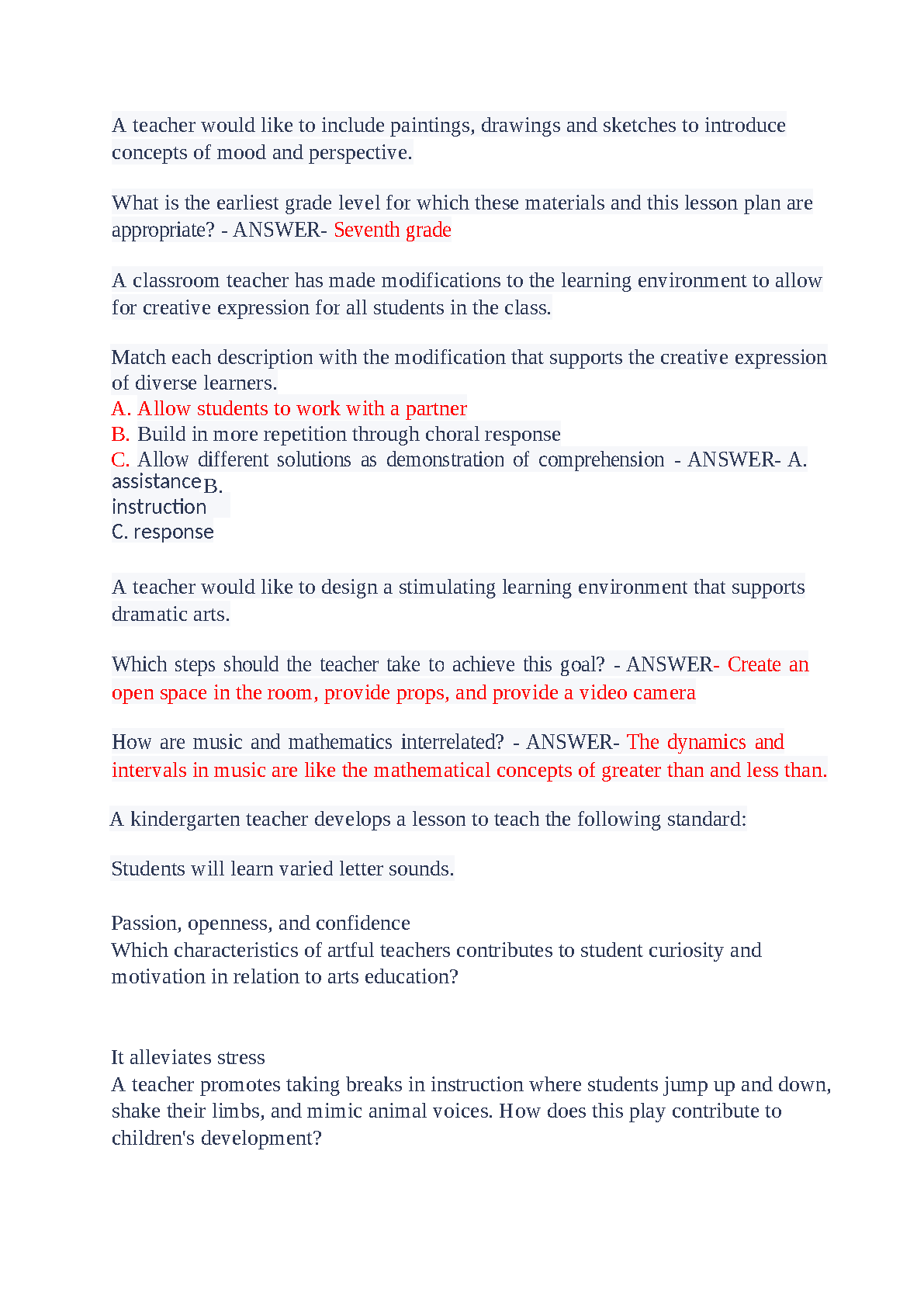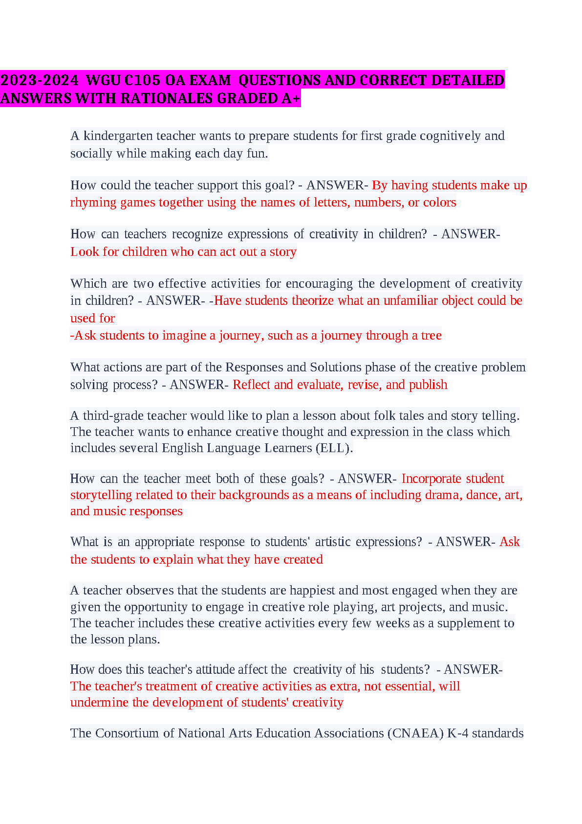 Unlock academic success with our latest 2025/2026 study guide for the WGU C105 Introduction to the Arts Objective Assessment. This resource is meticulously crafted to help you master the course material and pass your exam on the very first attempt. Inside, you'll find a complete set of exam questions paired with correct, detailed answers and clear rationales. This A+ graded material covers all key topics, ensuring you are fully prepared to tackle the OA with confidence. Stop worrying about resits and start studying smarter with this essential guide to acing WGU C105.
