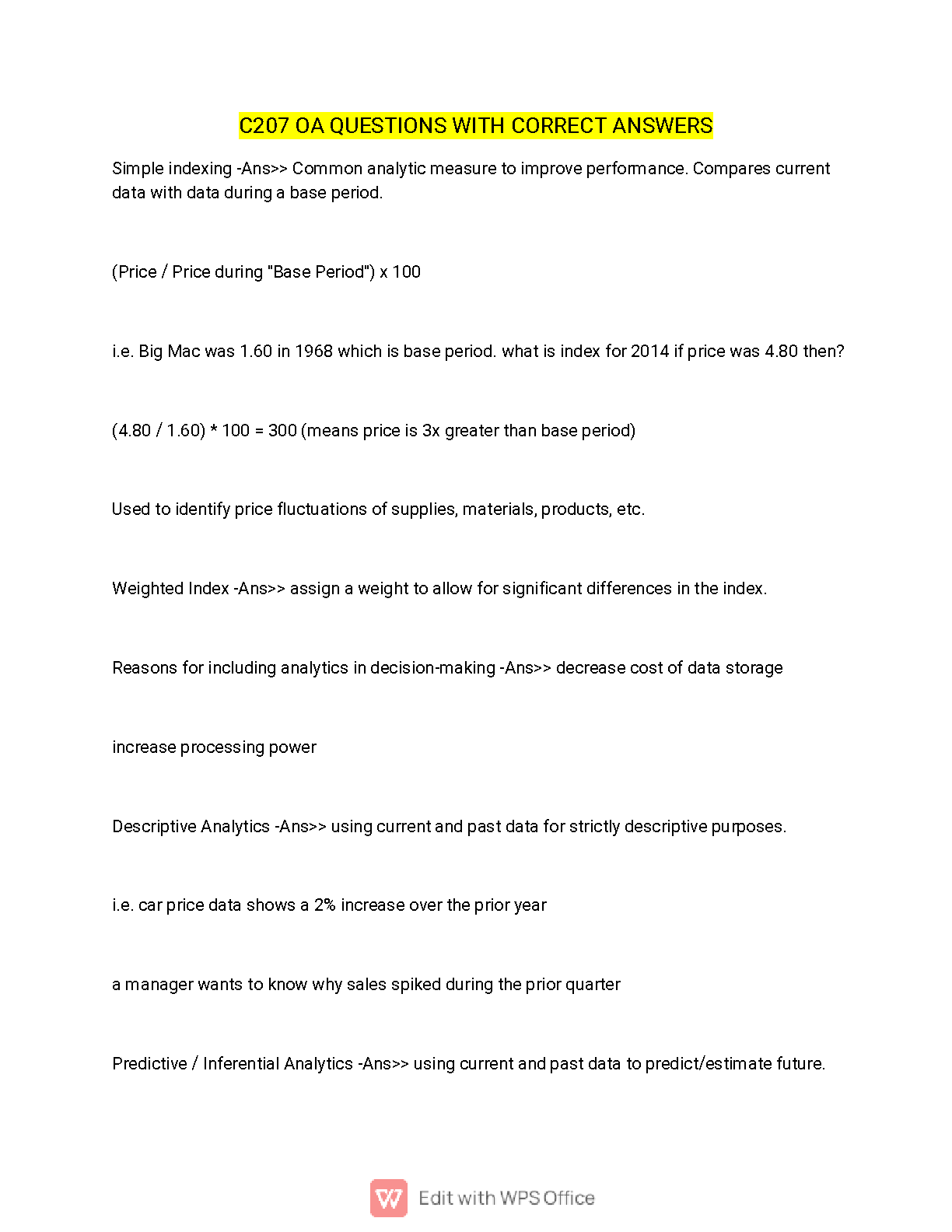 Unlock success in your WGU C207 Data-Driven Decision Making course with our ultimate OA Test Bank, fully updated for the 2025/2026 academic year. This comprehensive resource is packed with the latest exam questions and 100% accurate, verified answers to ensure you pass your Objective Assessment on the very first try. Dive deep into key topics like simple and weighted indexing, descriptive analytics, and predictive/inferential analytics. Our easy-to-follow question-and-answer format is designed to help you master the course material efficiently and walk into your exam with confidence. Stop worrying about resits and start preparing for an A! Download now and secure your path to success.