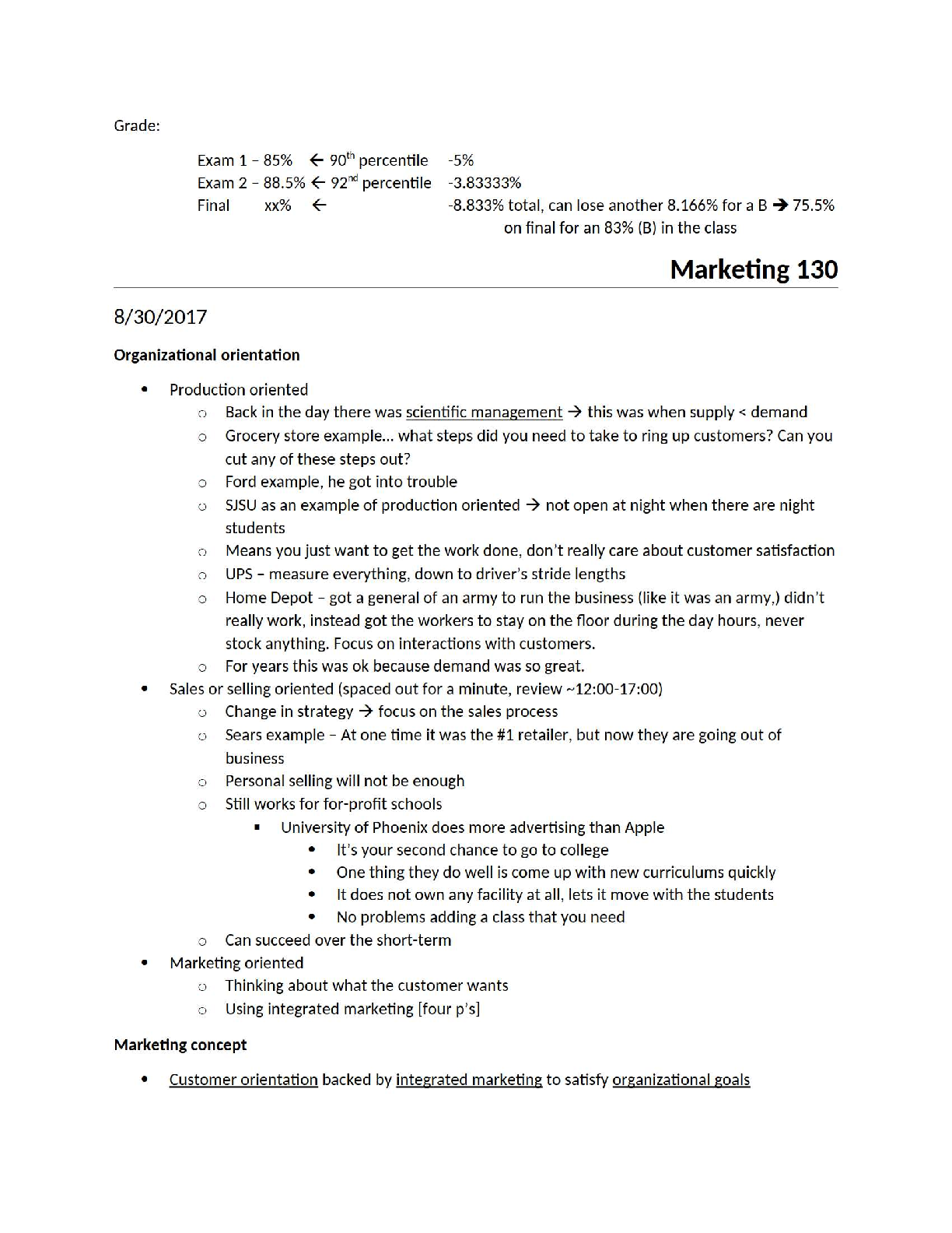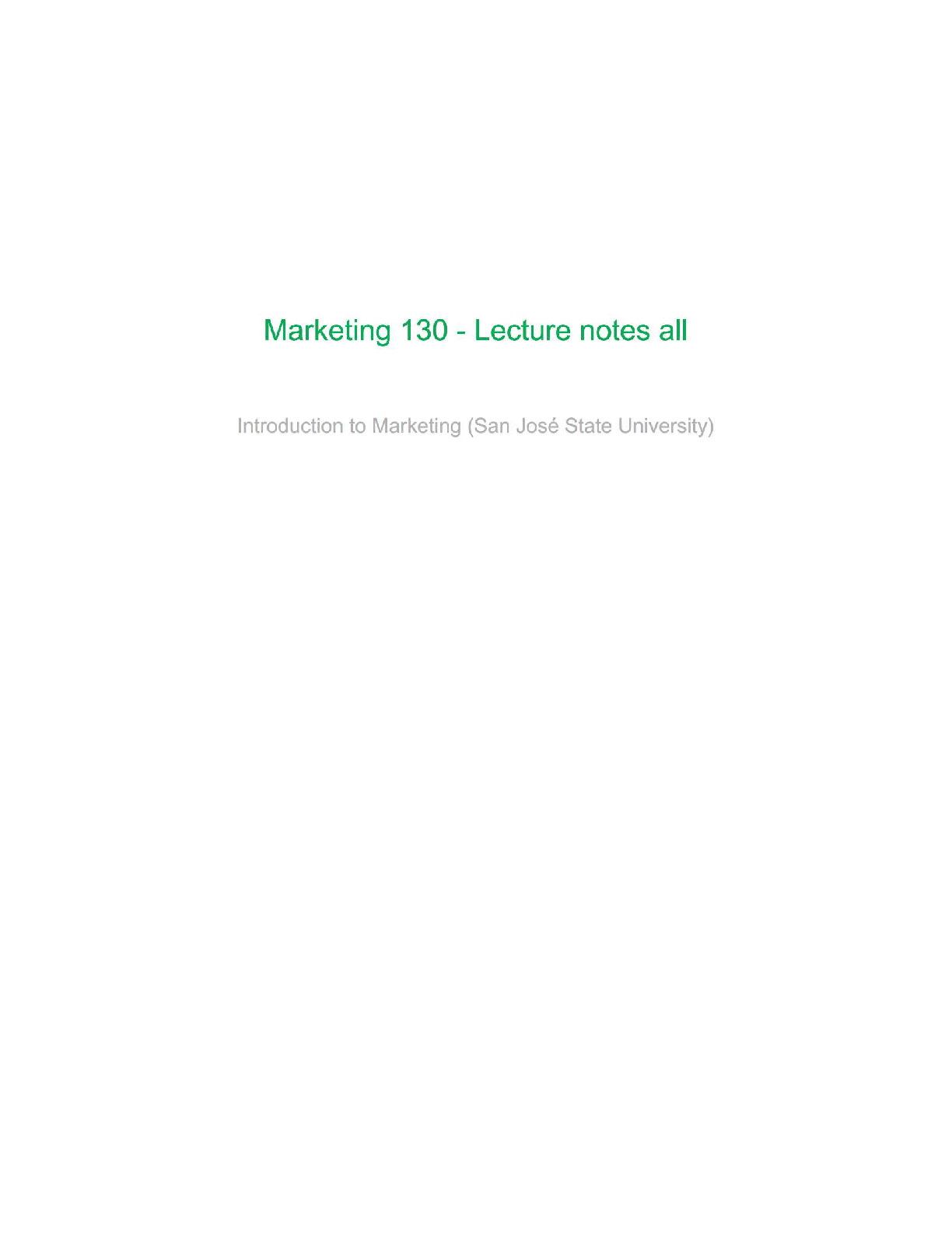 Unlock your potential in Marketing 130 at San José State University with this complete collection of lecture notes. Meticulously compiled for the 2025/2026 academic year, this guide covers every essential topic from the Introduction to Marketing syllabus. Say goodbye to exam stress and resits! These notes are structured to simplify complex concepts, making it easier to study, revise, and ace your exams on the very first attempt. Download now and secure your A!
