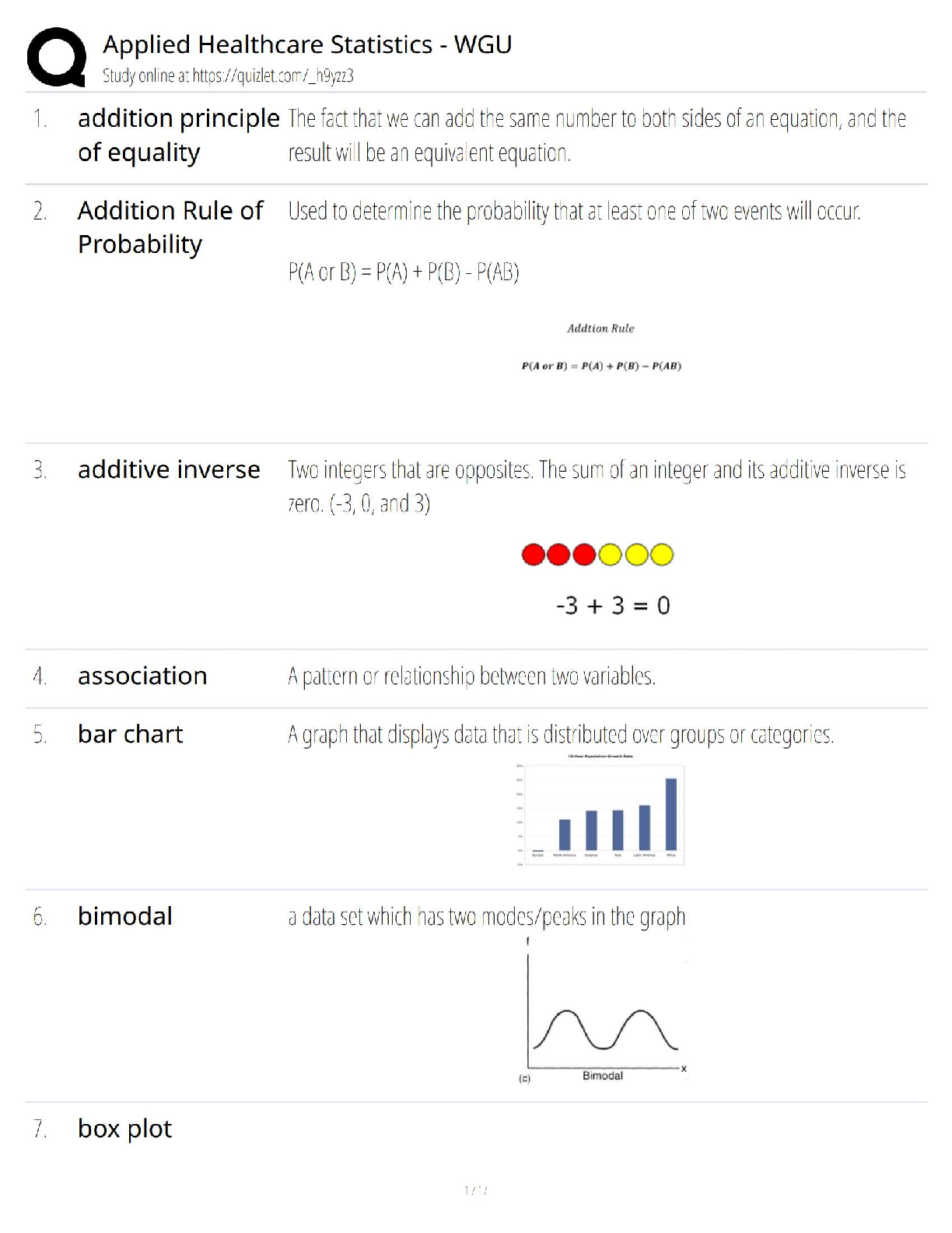 Master the essentials of WGU's Applied Healthcare Statistics with our comprehensive study guide for the 2025/2026 academic year. This resource, aligned with key concepts from 'Essentials of Statistics, 7th Edition' by Mario F. Triola, breaks down complex topics into easy-to-understand definitions and visual examples. Covering everything from the Addition Rule of Probability to bimodal distributions and bar charts, these notes are meticulously crafted to help you grasp core principles and ace your exam on the very first try. Avoid resits and build a solid foundation in healthcare statistics with this ultimate study companion.