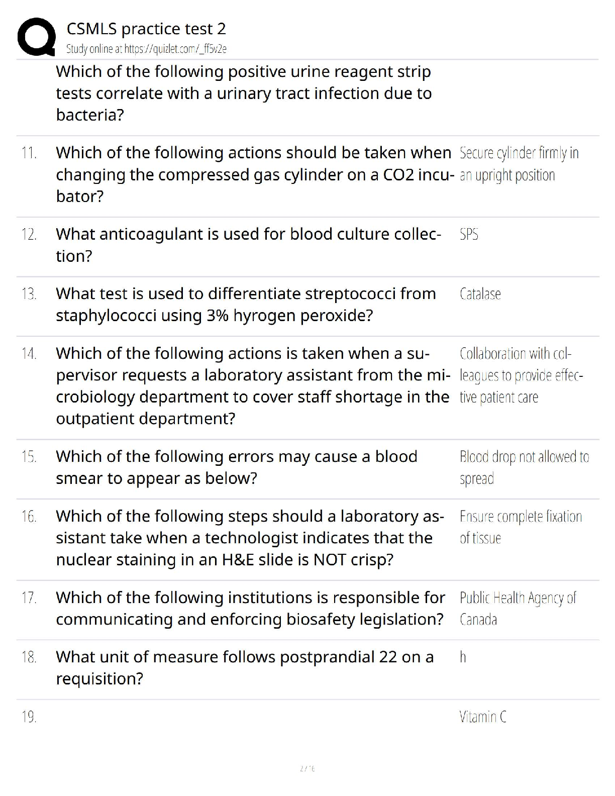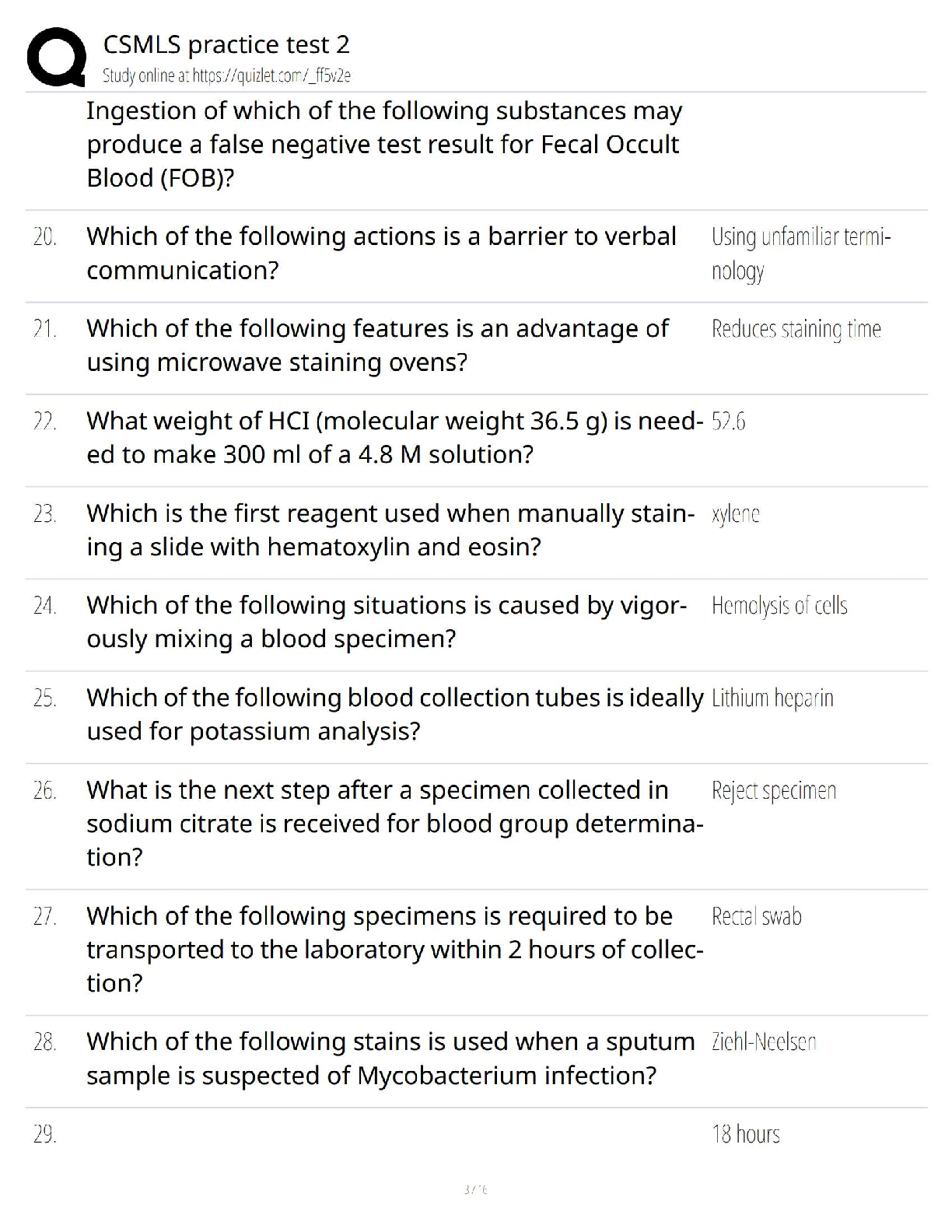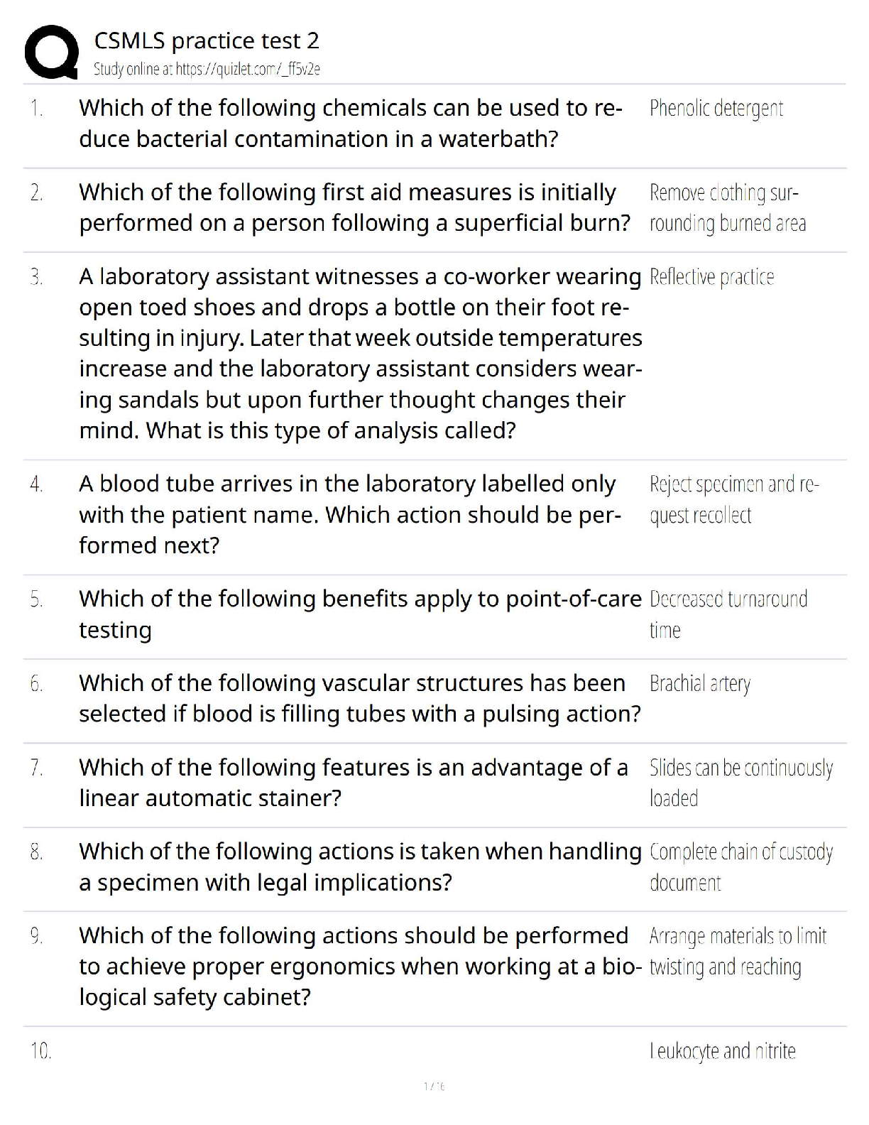 Master the CSMLS General MLT certification exam with our expertly compiled test bank. This essential study resource provides an extensive collection of practice questions complete with verified answers, mirroring the format and content of the actual exam. Covering key areas such as laboratory safety, specimen processing, quality assurance, and specific disciplinary knowledge, this guide is your ultimate tool for effective preparation. Boost your confidence, pinpoint your weak spots, and ensure you're fully prepared to pass on your first attempt. Download now and start your journey to certification success.