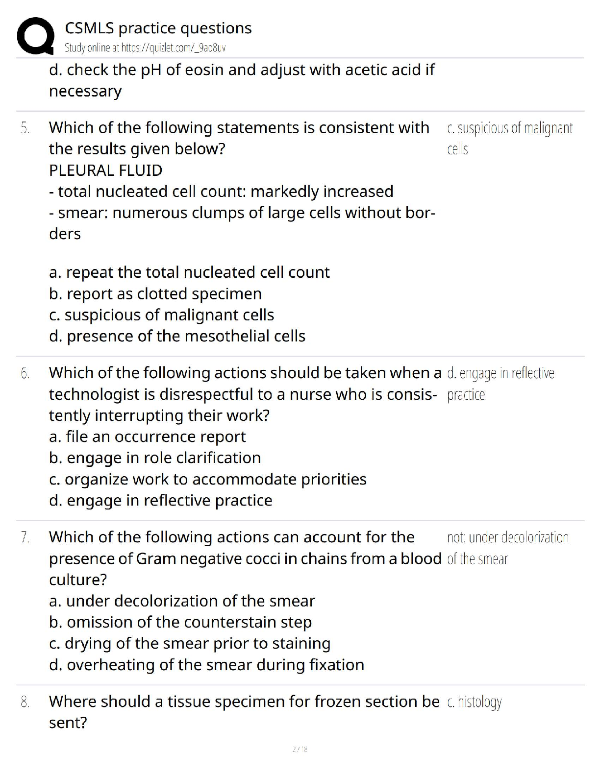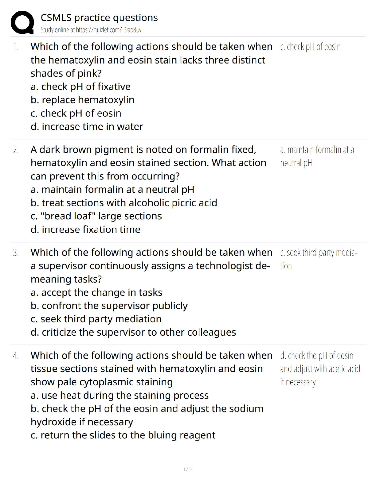 Ace your Canadian Society for Medical Laboratory Science (CSMLS) certification exam with our comprehensive and up-to-date test bank. This essential study guide features a vast collection of practice questions covering all core exam topics, including histology, staining procedures, and professional standards. Each question comes with a detailed, verified answer to deepen your understanding and build confidence. Prepare effectively, master the key concepts, and ensure you pass your CSMLS certification on the first attempt.