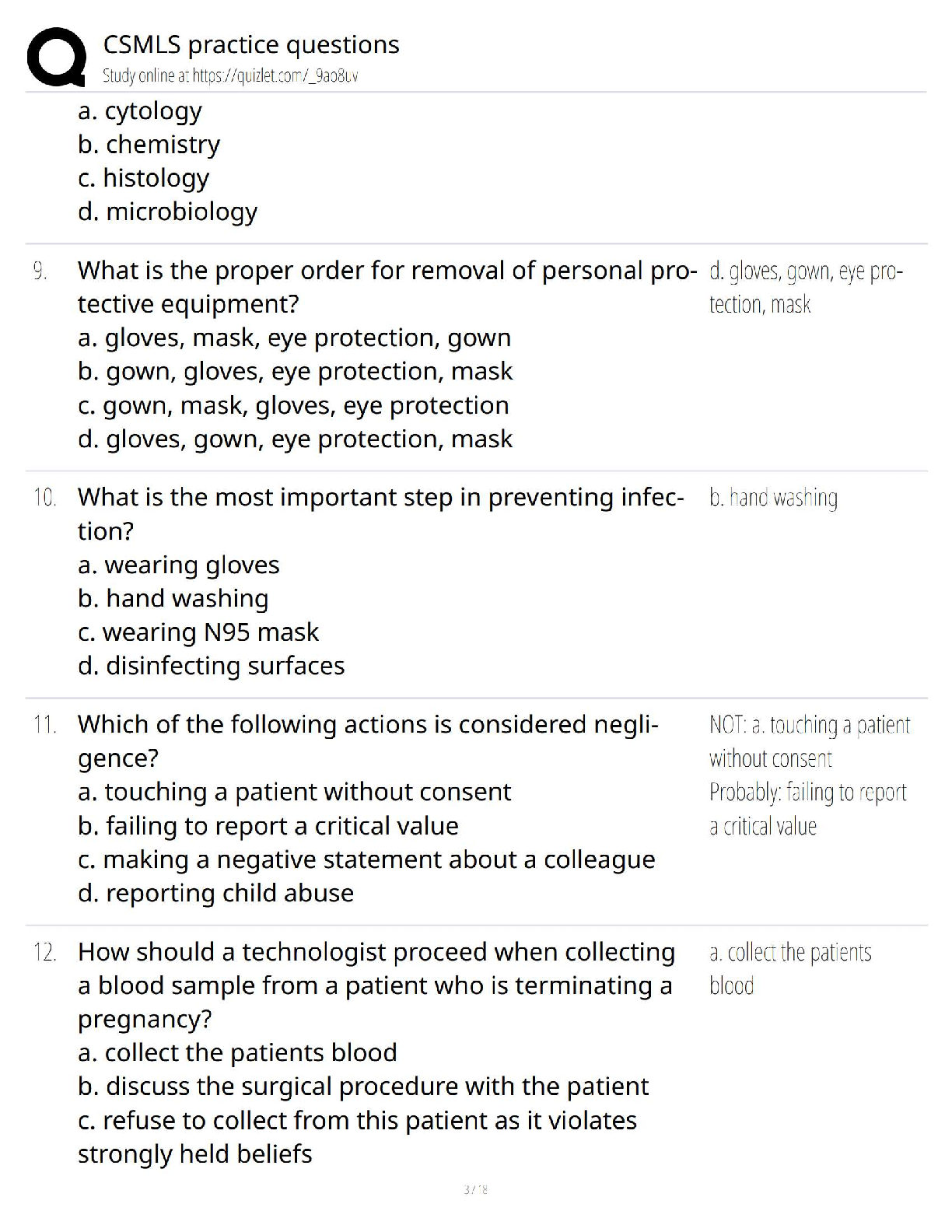 CSMLS Medical Laboratory Science Certification Exam Test Bank: Complete Practice Questions and Expert-Verified Answers