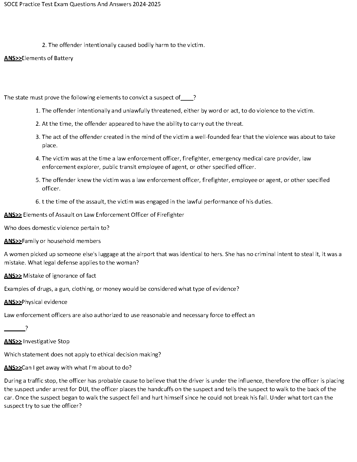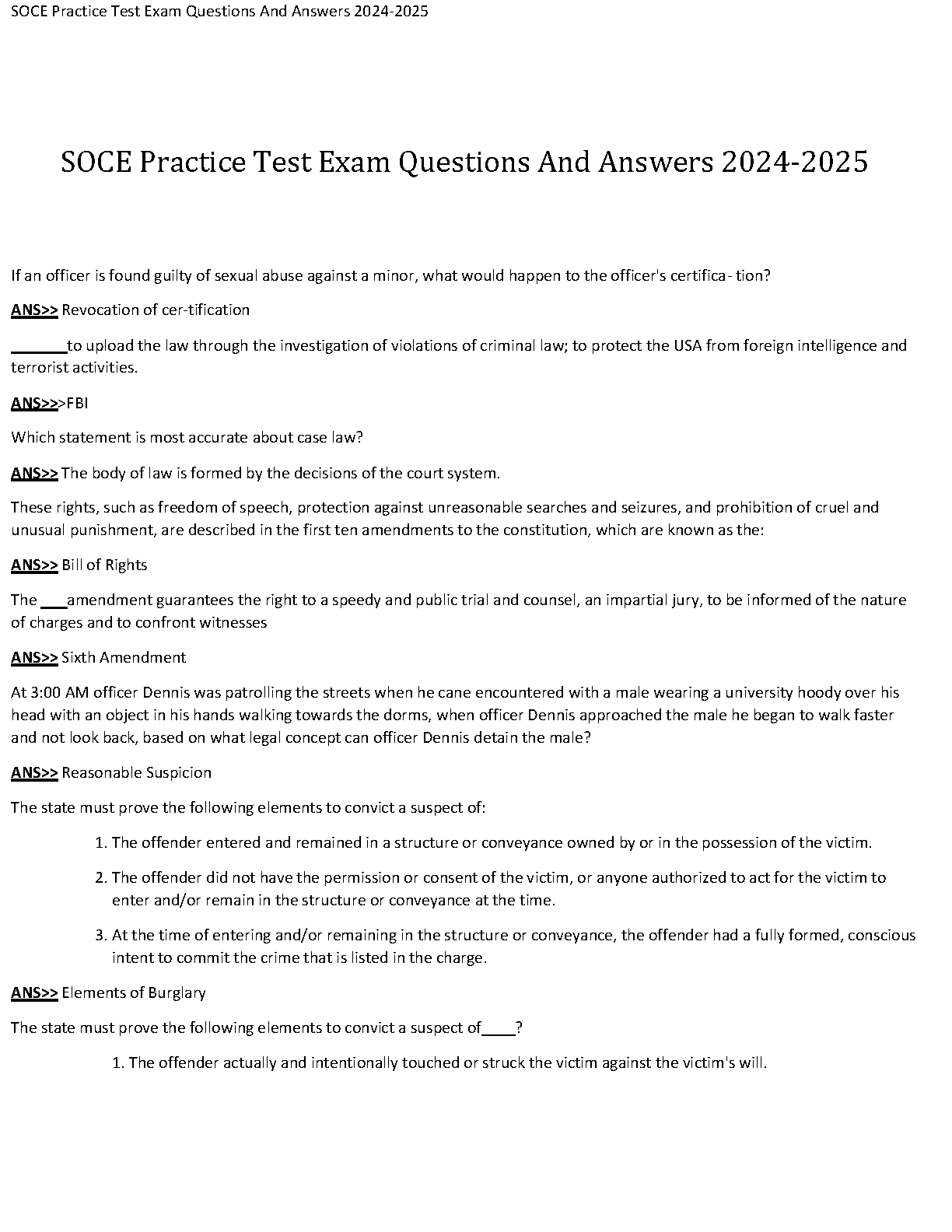Ace your State Officer Certification Examination (SOCE) with our comprehensive 2024-2025 practice test bank. This guide is packed with verified questions and detailed answers, covering all essential topics you'll face on the real exam. From constitutional law and criminal procedure to specific legal concepts like reasonable suspicion and elements of burglary, our resource is designed to help you study effectively and pass on your first attempt. Get instant access to the study materials you need to build your confidence and secure your certification without the stress of a resit.