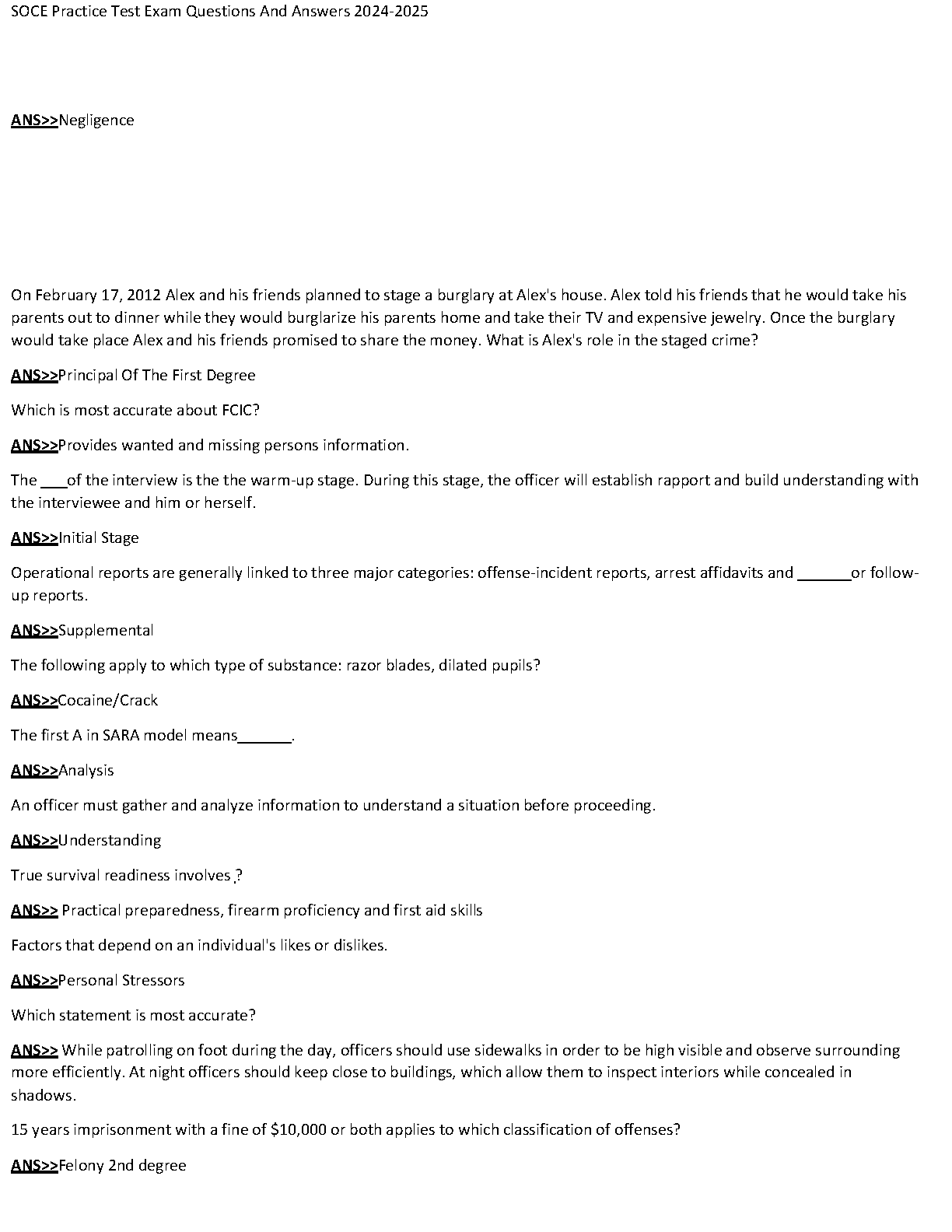 SOCE State Officer Certification Exam Test Bank 2024-2025 | Verified Questions and Answers