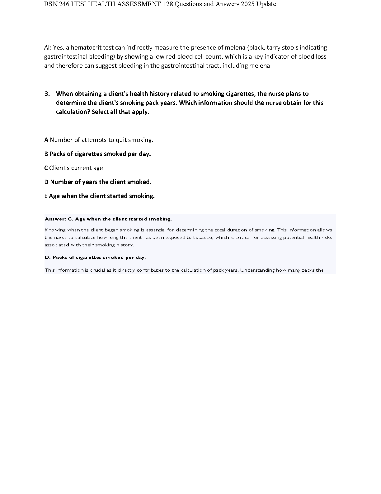 Pass Your HESI Health Assessment Exam First Try: BSN 246 Test Bank (128 Questions & Rationales) - 2025/2026 Edition