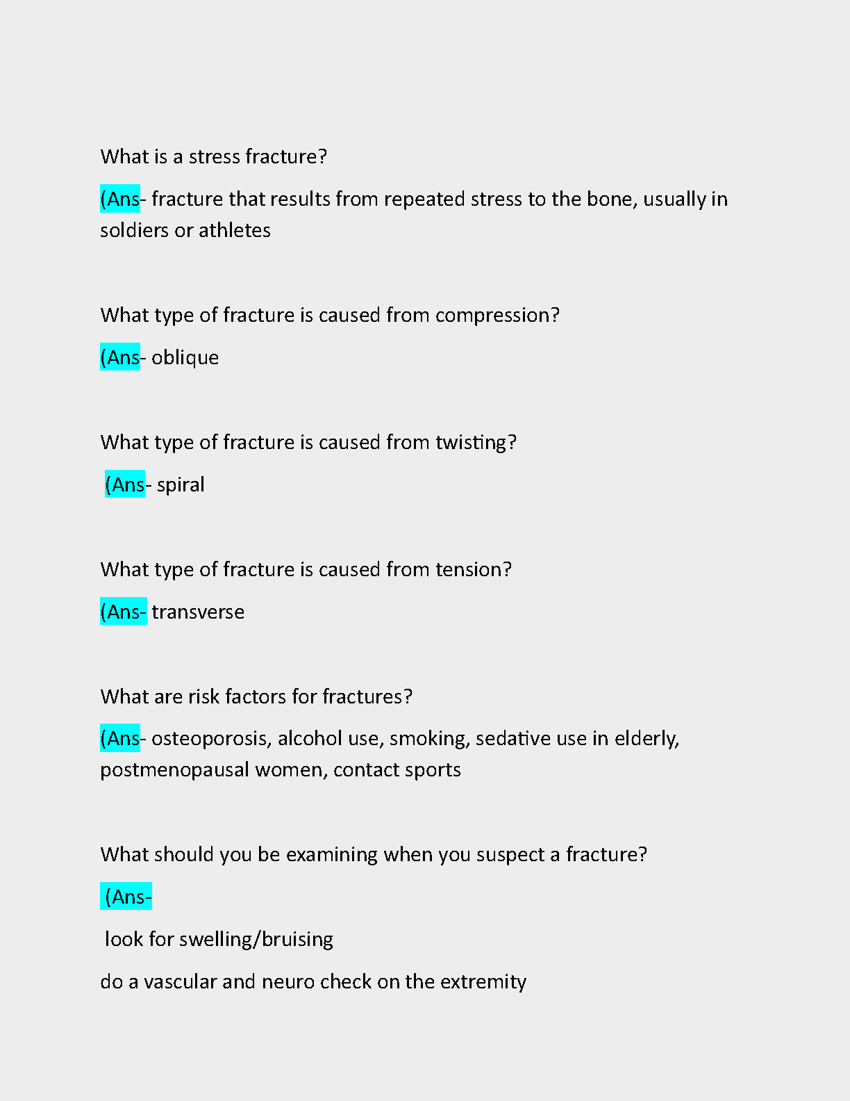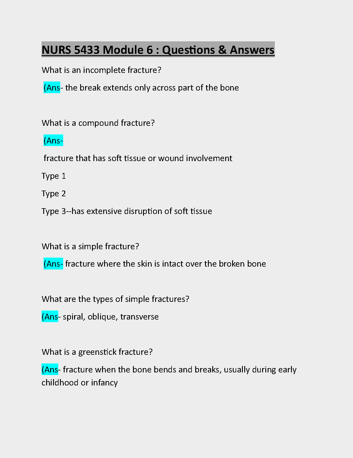 Unlock exam success in NURS 5433 Module 6 with this comprehensive study guide for the 2025/2026 academic year. This resource features a detailed compilation of questions and expertly verified answers, focusing on crucial topics such as the classification of fractures (incomplete, compound, simple, greenstick). It's meticulously crafted to help you grasp complex concepts, prepare effectively, and pass your exams on the first try. Avoid the stress of resits and secure top grades with this essential learning tool.