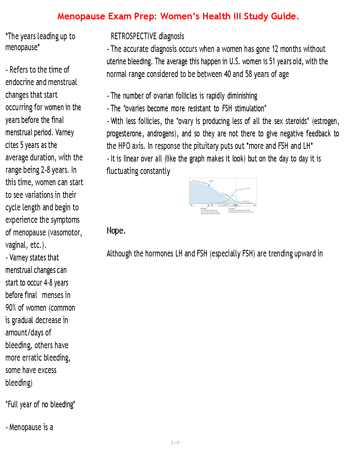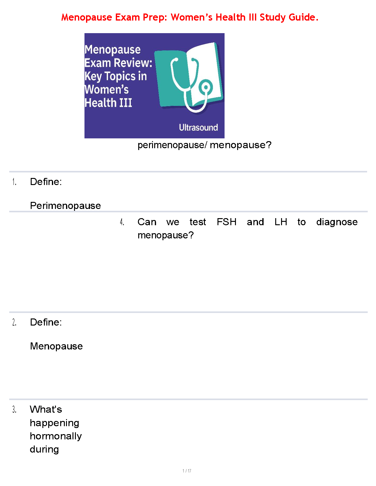 Master the key topics of menopause with this comprehensive study guide for the 2025/2026 academic year. This resource provides detailed exam elaborations covering everything from the definitions of perimenopause and menopause to hormonal changes and diagnostic testing with FSH and LH. Designed to help you understand complex concepts and excel in your exams, this guide is your essential tool for achieving success on your first try and avoiding resits. Perfect for nursing and health science students focusing on Women's Health.