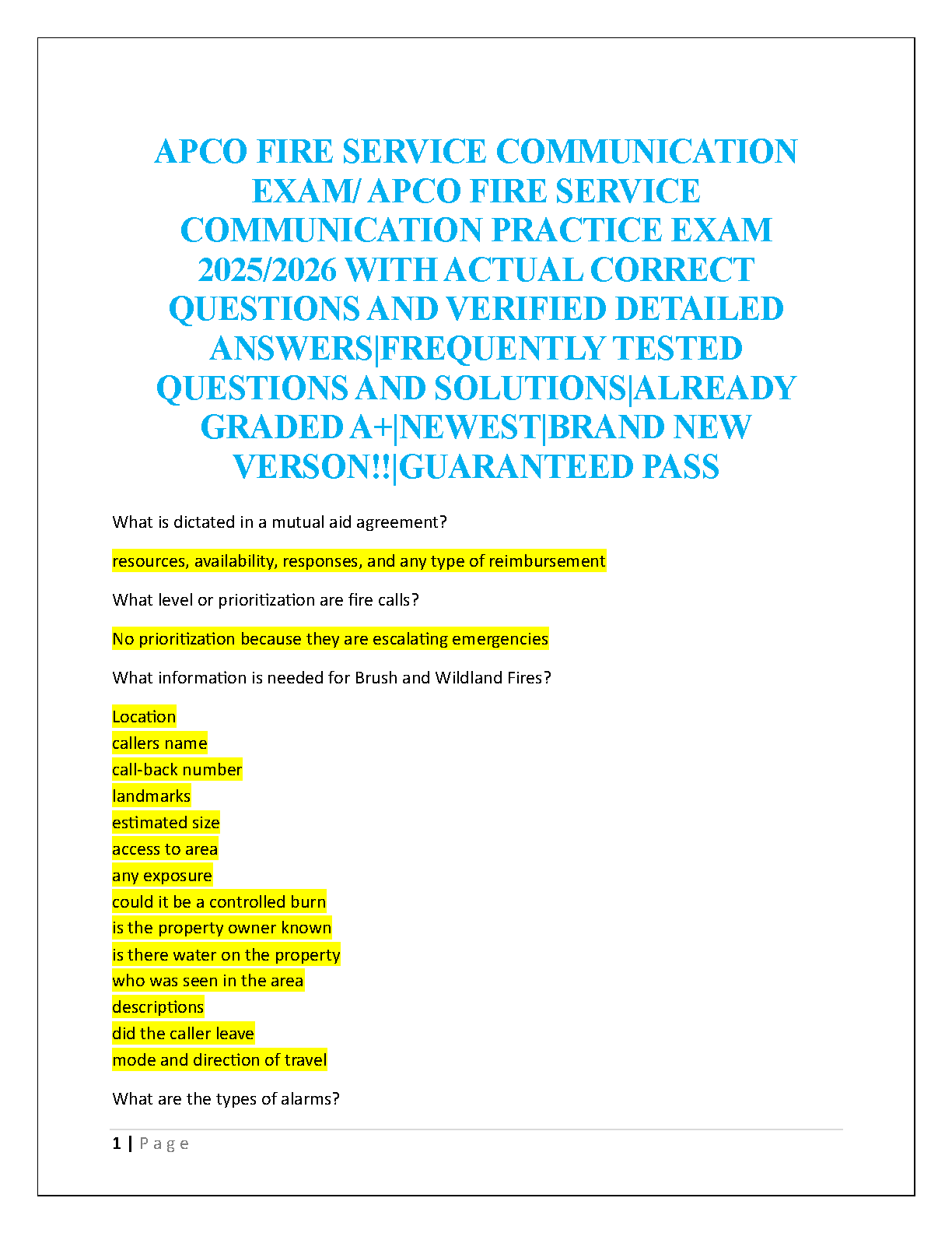 APCO International Fire Service Communication Exam Test Bank 2025/2026: Latest A+ Graded Questions and Verified Answers for a Guaranteed First-Attempt Pass