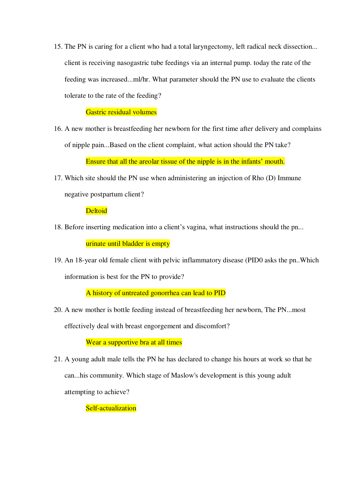 PN HESI EXIT EXAM TEST BANK (Questions with Answers) All Correct.