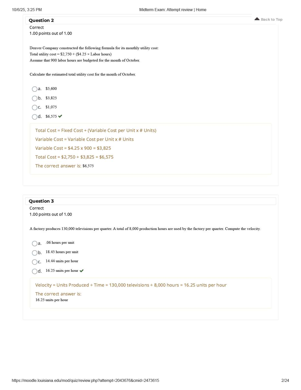 Test Bank: ACCT 526 Midterm Exam 1 with 100% Correct Answers | Based on Managerial Accounting, 18th Ed. by Garrison, Noreen & Brewer