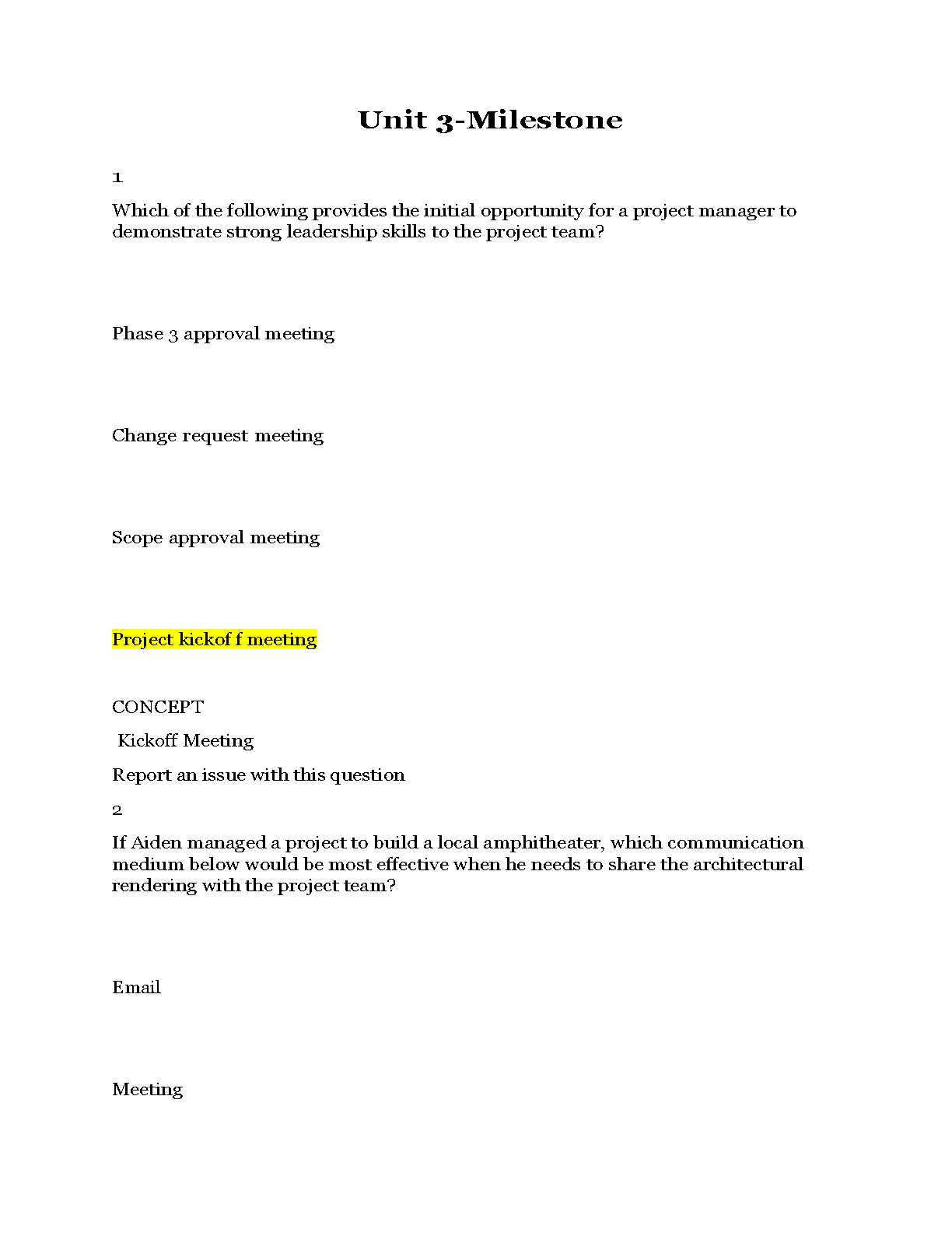Project Management Unit 3 Milestone Test Bank | Verified Questions & Answers for Exam Success