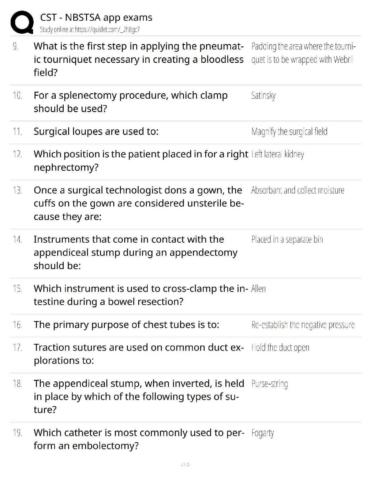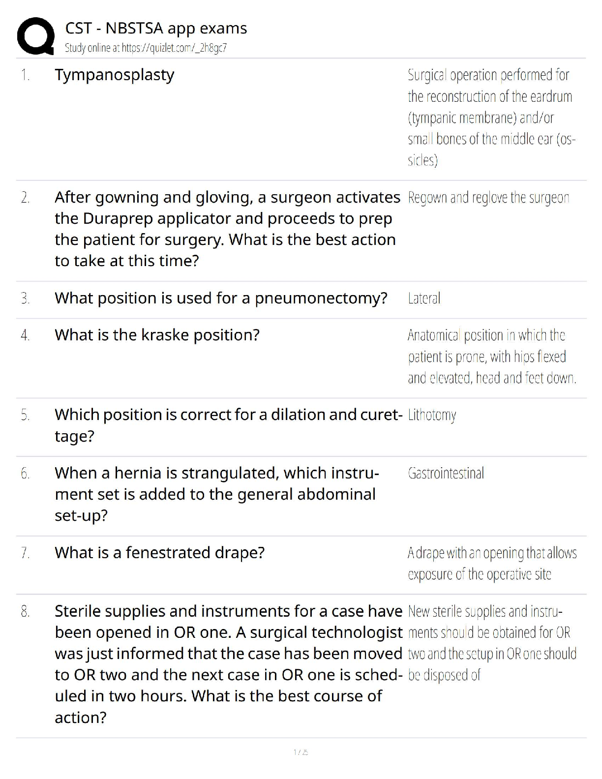 Prepare to excel in your Certified Surgical Technologist (CST) certification exam with our meticulously compiled test bank. This resource is specifically designed for the NBSTSA exam and features a vast collection of practice questions complete with accurate, verified answers. Covering all essential topics from surgical procedures, patient positioning, sterile techniques, and instrument handling, this study guide provides the in-depth knowledge you need. The clear question-and-answer format allows for efficient study and self-assessment, helping you boost your confidence and master the material required to pass your CST exam on the very first attempt.
