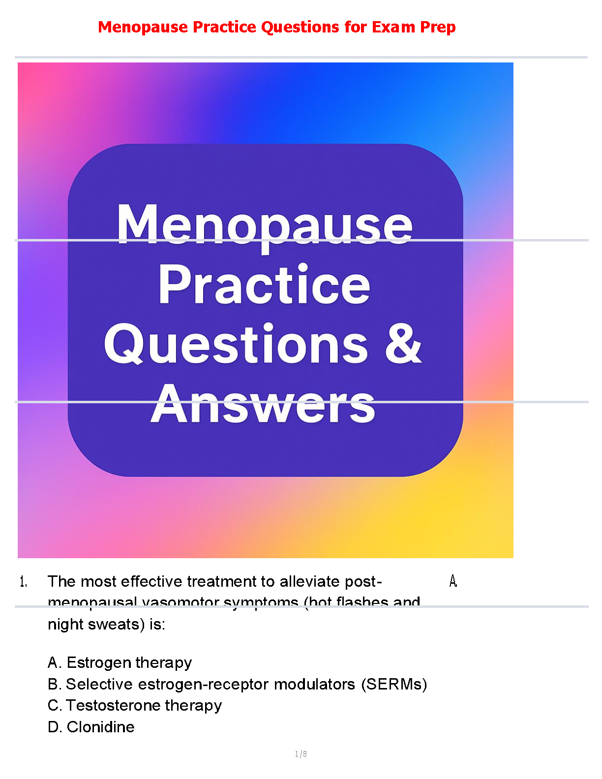 Are you preparing for a crucial nursing or medical exam and need to master the topic of menopause? Look no further! Our 'Menopause Exam Prep Mastery 2025/2026' is the ultimate study resource designed to ensure you pass your exam on the very first try. This guide features a curated set of practice questions that cover all critical aspects of menopause, from vasomotor symptoms and hormonal therapies to long-term health implications. Each question comes with a clear, verified answer, providing you with the knowledge and confidence needed to tackle any exam question. Updated for the 2025/2026 academic year, this resource is perfect for students aiming to avoid resits and achieve top scores. Download now and take the first step towards acing your exam!