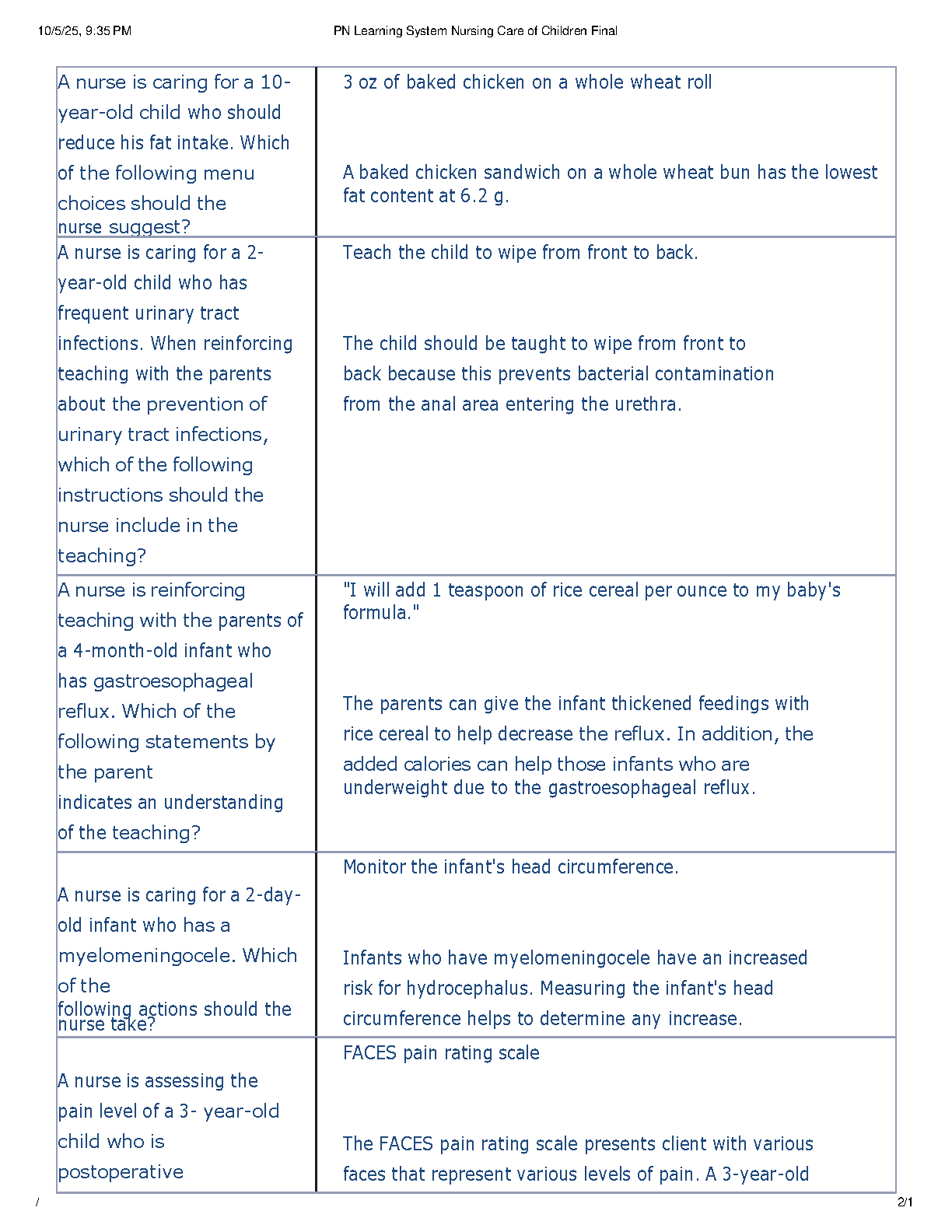 PN Learning System: Nursing Care of Children Final Exam Test Bank 2025/2026 | Verified Questions and Detailed Answers