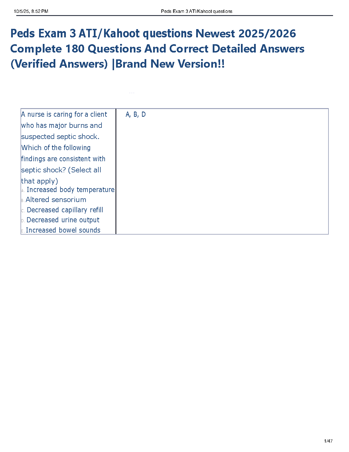 Ace your ATI Pediatrics Exam 3 on the first try with our brand new, comprehensive test bank for the 2025/2026 academic year. This ultimate study resource features a complete set of 180 practice questions, each paired with a correct, verified, and detailed answer. Designed to mirror the actual exam format and content, this guide covers all critical Peds nursing topics, ensuring you're fully prepared to tackle any question. Stop stressing about resits and start studying smarter. Download now to secure your top grade!